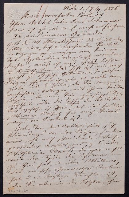 Anton Schindler, Brief an Joseph August Röckel in Paris, Wien, 19. März 1831, Autograph