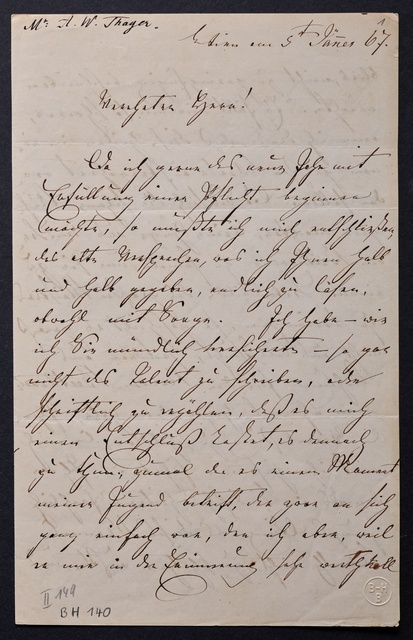 Sebastian Rau, Brief an Ignaz Moscheles in London, Wien, 17. Juni 1827, Autograph