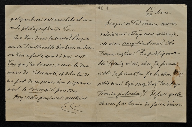 César Cui, Brief an einen unbekannten Adressaten, Autograph