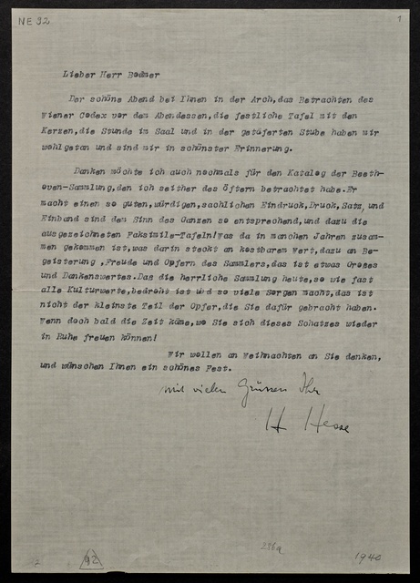 Hermann Hesse, Brief an Hans Conrad Bodmer, 1940