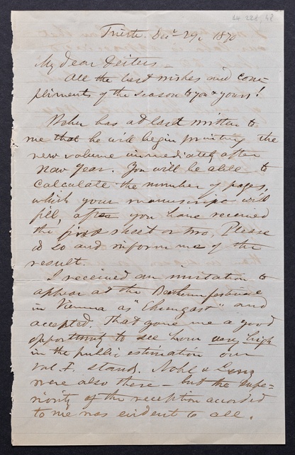 Nikolaus Simrock, Brief an Franz Gerhard Wegeler in Koblenz, Dezember 1827, Autograph, Fragment