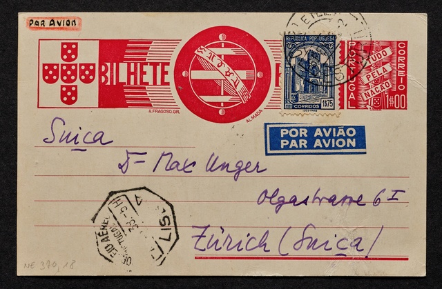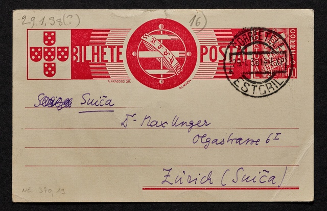 Stefan Zweig, Postkarte an Max Unger, ohne Ort und Datum (Estoril, 6. Februar 1938), Autograph