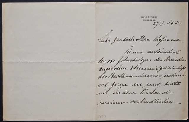 Irma Adelmann, Brief an den Verein Beethoven-Haus Bonn, Wiesbaden, 27. Januar 1921, Autograph