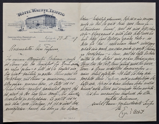 Eugen d'Albert, Brief an Joseph Joachim, Leipzig, 27. Februar 1907