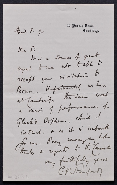 Joseph Joachim, Brief an ein Mitglied des Vorstands des Beethoven-Hauses in Bonn, Berlin, 10. April 1907, Autograph