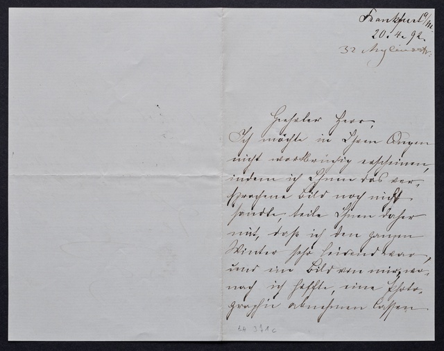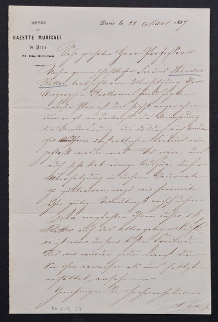 Ferdinand Ries, Brief an Johann Peter Pixis in Paris, Frankfurt am Main, 23. Februar 1831, Autograph