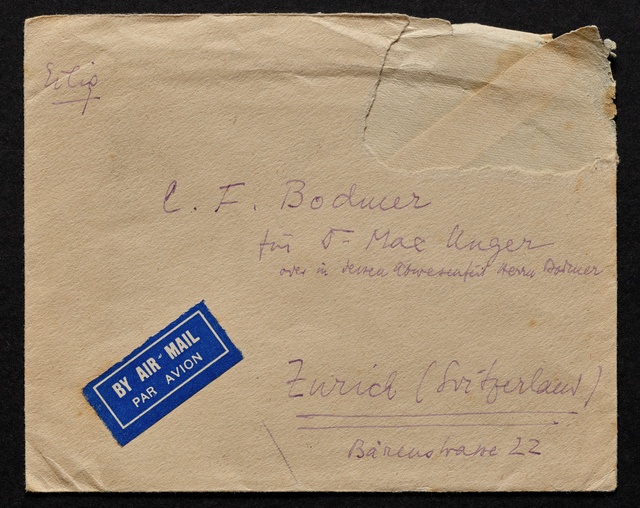 Stefan Zweig, Briefumschlag eines Briefes an Max Unger, wohl November 1934, Autograph