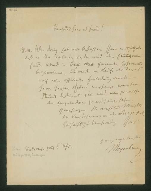 Heinrich Carl Breidenstein, Brief an einen Musikdirektor, Autograph, Konzept