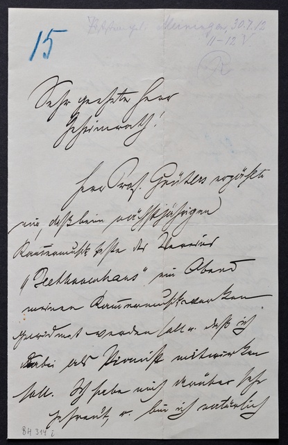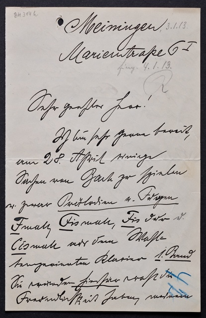Max Reger, Brief an den Verein Beethoven-Haus Bonn, Meiningen, 15. Januar 1913, Autograph