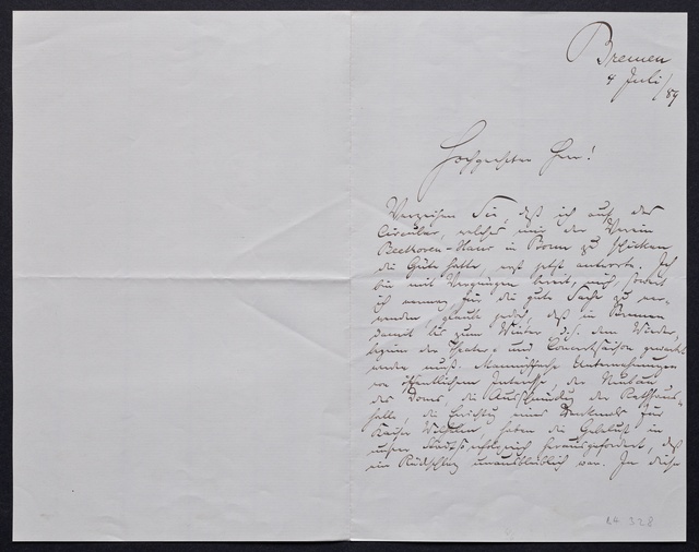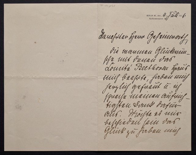 Joseph Joachim, Brief an ein Mitglied des Vorstands des Vereins Beethoven-Haus mit Geheimratstitel in Bonn, Berlin, 4. Juli 1906, Diktat