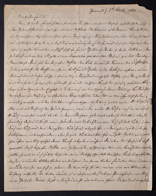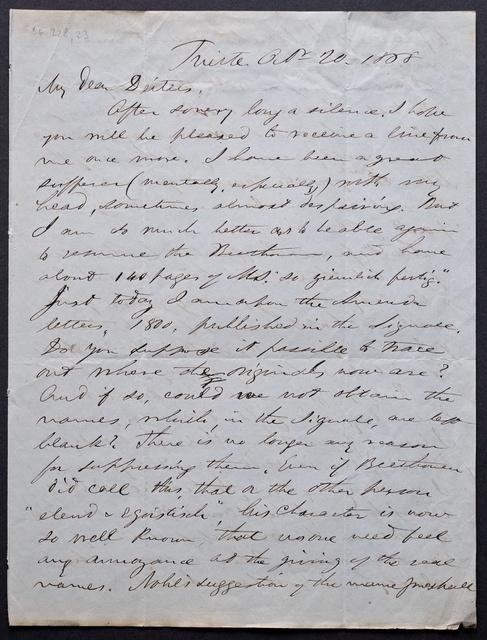 Ferdinand Ries, Brief an Franz Gerhard Wegeler in Koblenz, Frankfurt am Main, 20. Oktober 1828, Autograph