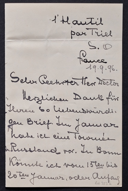 Wanda Landowska, Brief an den Verein Beethoven-Haus in Bonn, Triel sur Seine, 19. September 1906, Autograph