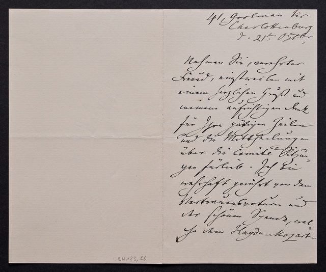 Joseph Joachim, Brief an ein Mitglied des Vorstands des Beethoven-Hauses in Bonn, wahrscheinlich Friedrich Knickenberg, Berlin, 21. März 1907, Diktat