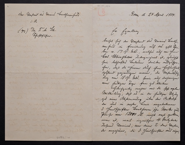 Beethoven-Haus (Bonn), Konzept eines Briefes an Franz Johannes von Rottenburg, Bonn, 24. April 1904, Autograph von Sandt
