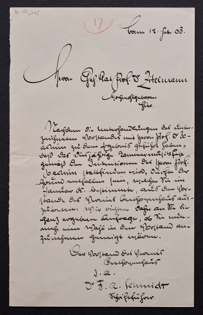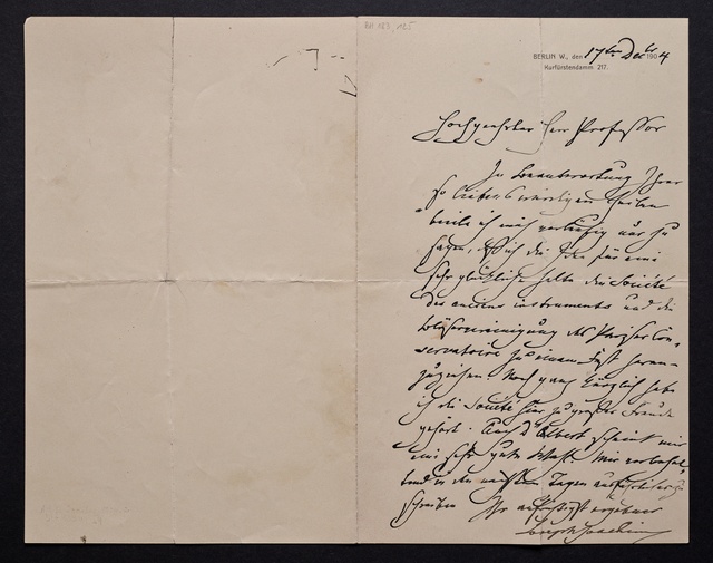 Joseph Joachim, Brief an ein Mitglied des Vorstands des Vereins Beethoven-Haus mit Professorentitel in Bonn, Berlin, 17. Dezember 1904, Autograph