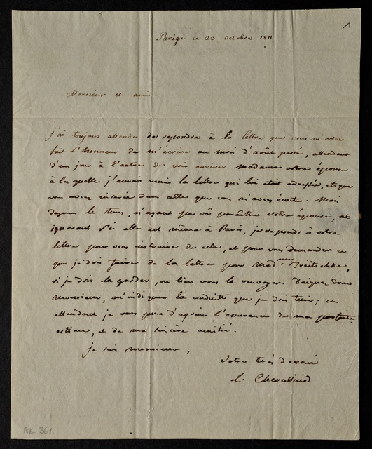 Luigi Cherubini, Brief an Georg Friedrich Treitschke in Wien, Paris, 23. Oktober 1811, Autograph