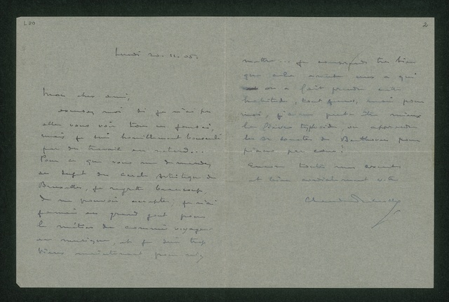 Claude Debussy, Brief an einen unbekannten Adressaten, 20. November 1905, Autograph