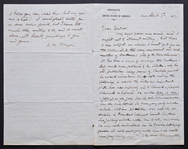 Joseph Joachim, Brief an ein Mitglied des Vorstands des Beethoven-Hauses in Bonn, wahrscheinlich Friedrich Knickenberg, Montreux, 27. April 1907, Diktat