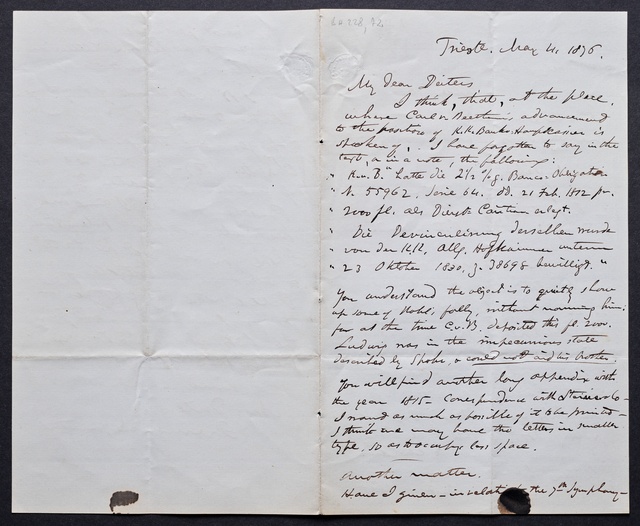 Ferdinand Ries, Brief an Franz Gerhard Wegeler in Koblenz, Frankfurt am Main, 17. März 1828, Autograph