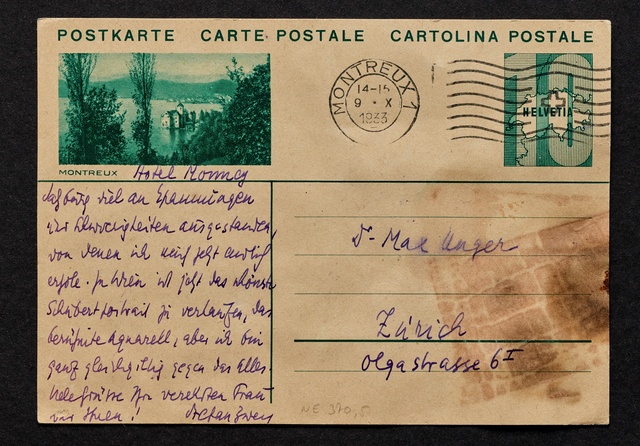 Stefan Zweig, Postkarte an Max Unger, ohne Ort und Datum (Montreux, Anfang Oktober 1933), Autograph