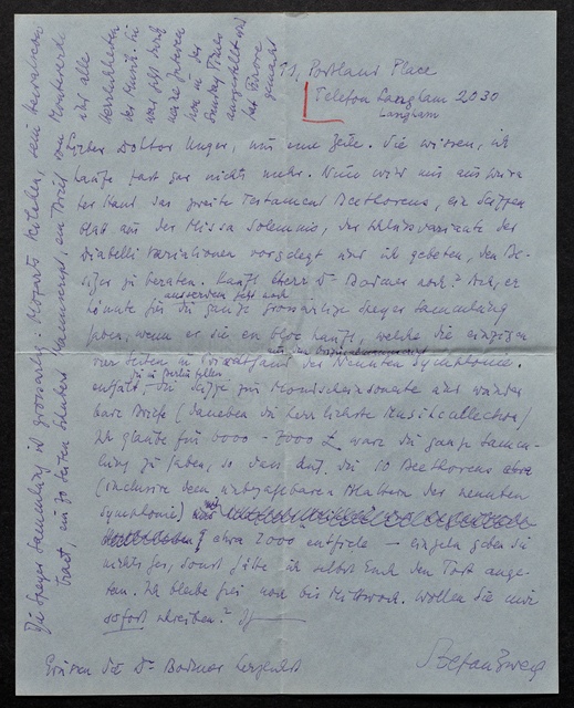 Stefan Zweig, Brief an Max Unger, ohne Ort und Datum (London, ca. 23. November 1934), Autograph