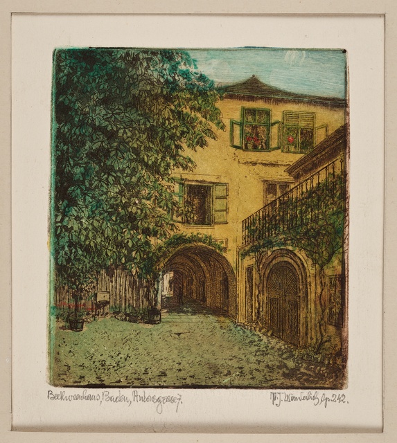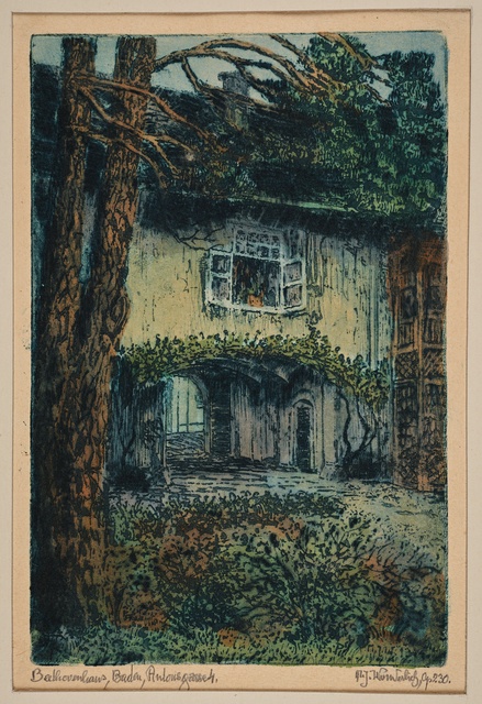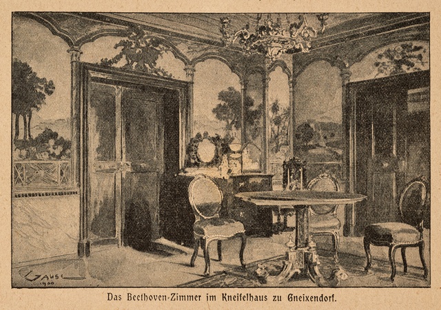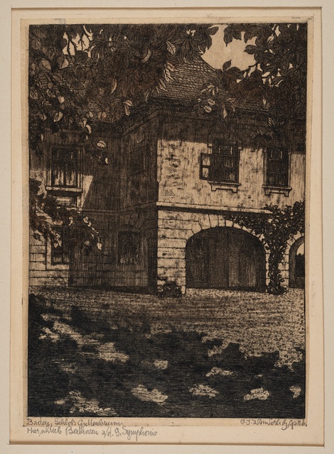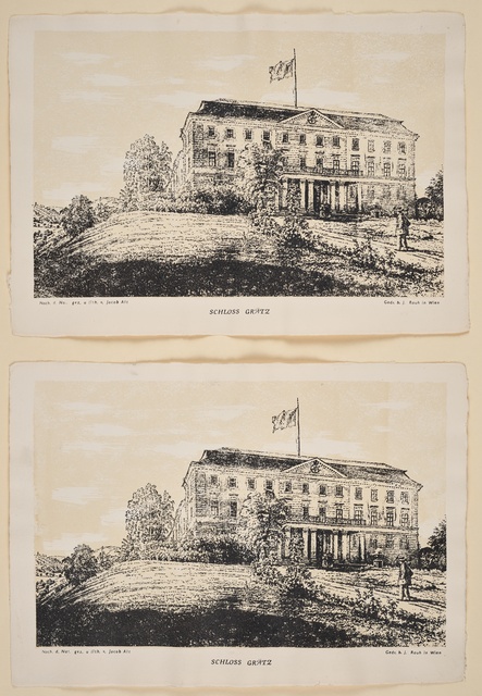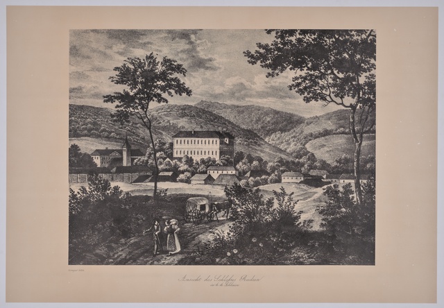 Sala Terrena im Garten des Palais Waldstein in Prag, 1841 - Stich von Johann Poppel nach einer Zeichnung von Ludwig Lange, gedruckt von Gustav Georg Lange, Darmstadt, erschienen bei Kronberger & Rziwnatz, Prag, 1841