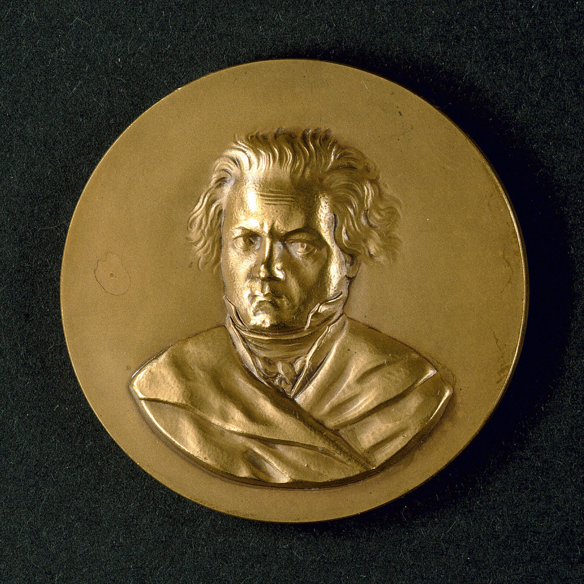 Bronzemedaille mit dem Porträt Beethovens - Nachguß der Reliefplakette von Leopold Heuberger durch Gebrüder Micheli, Berlin, um 1912