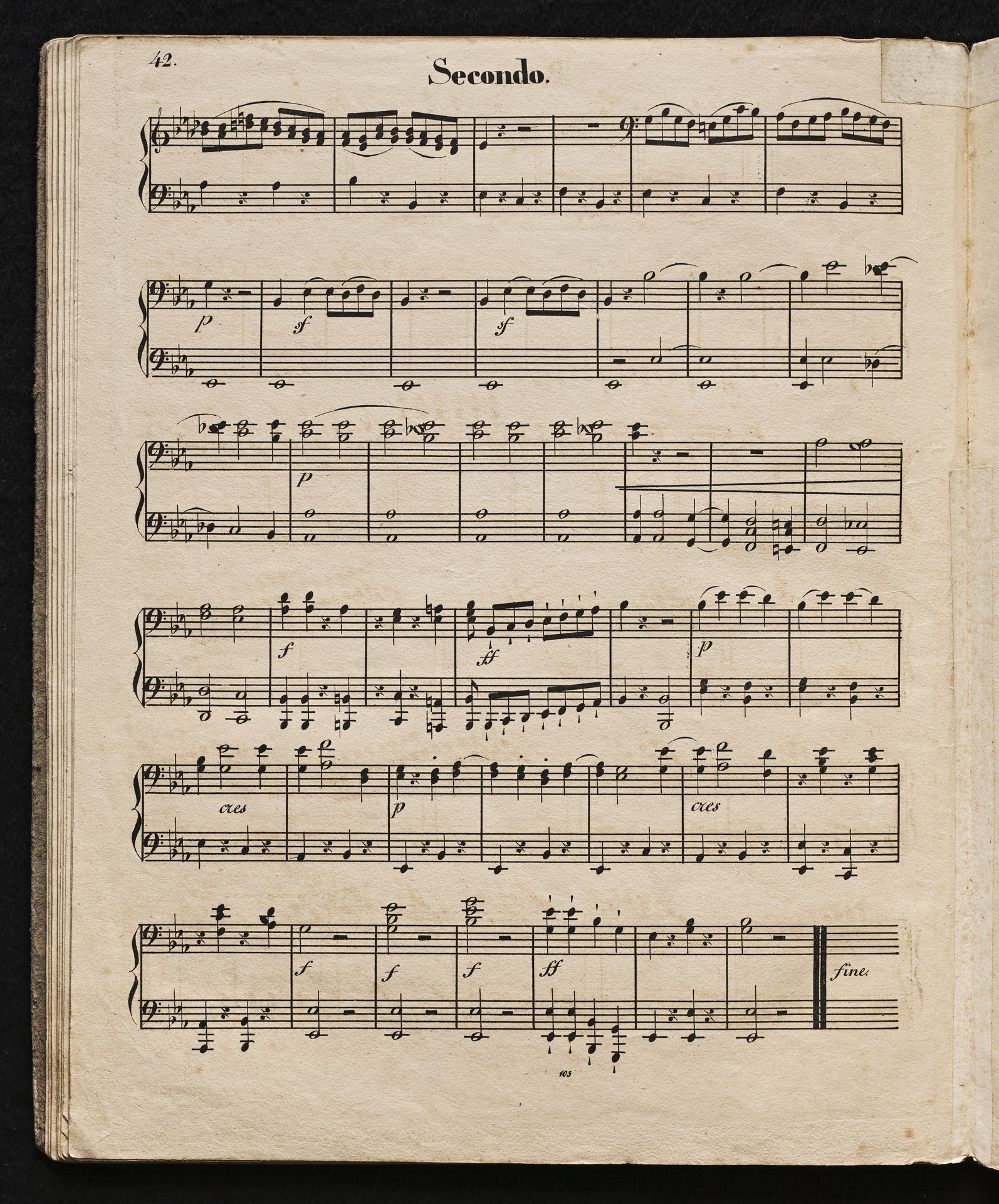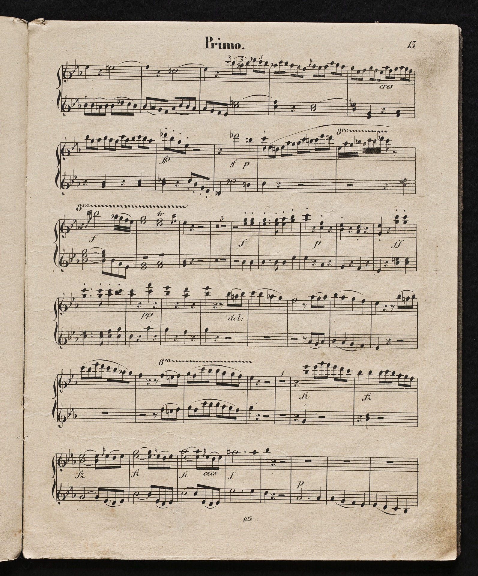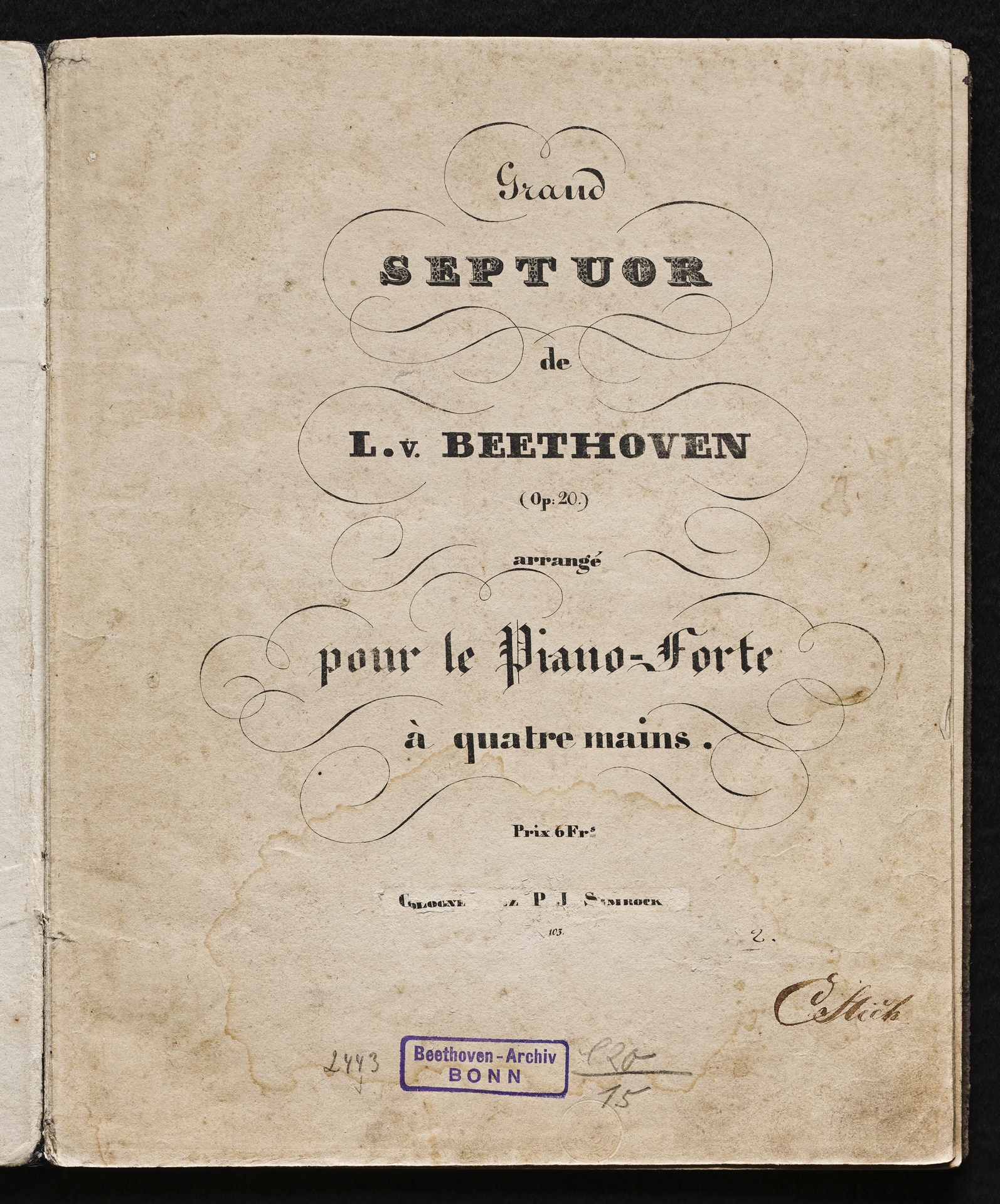 Ludwig van Beethoven, Septett für Violine, Viola, Klarinette, Horn, Fagott, Violoncello, Kontrabass (Es-Dur) op. 20, Bearbeitung für Klavier zu 4 Händen, Simrock, 103