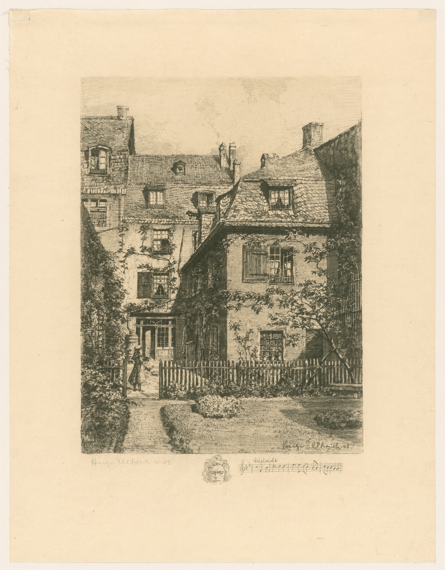 Beethoven-Haus, Bonn, Bonngasse, Gartenansicht - Radierung von Hugo Ulbrich nach einer eigenen Zeichnung, 1902