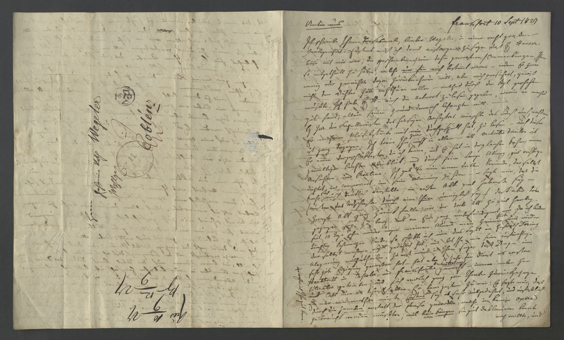 Ferdinand Ries, Brief an Franz Gerhard Wegeler in Koblenz, Frankfurt am Main, 10. September 1827, Autograph