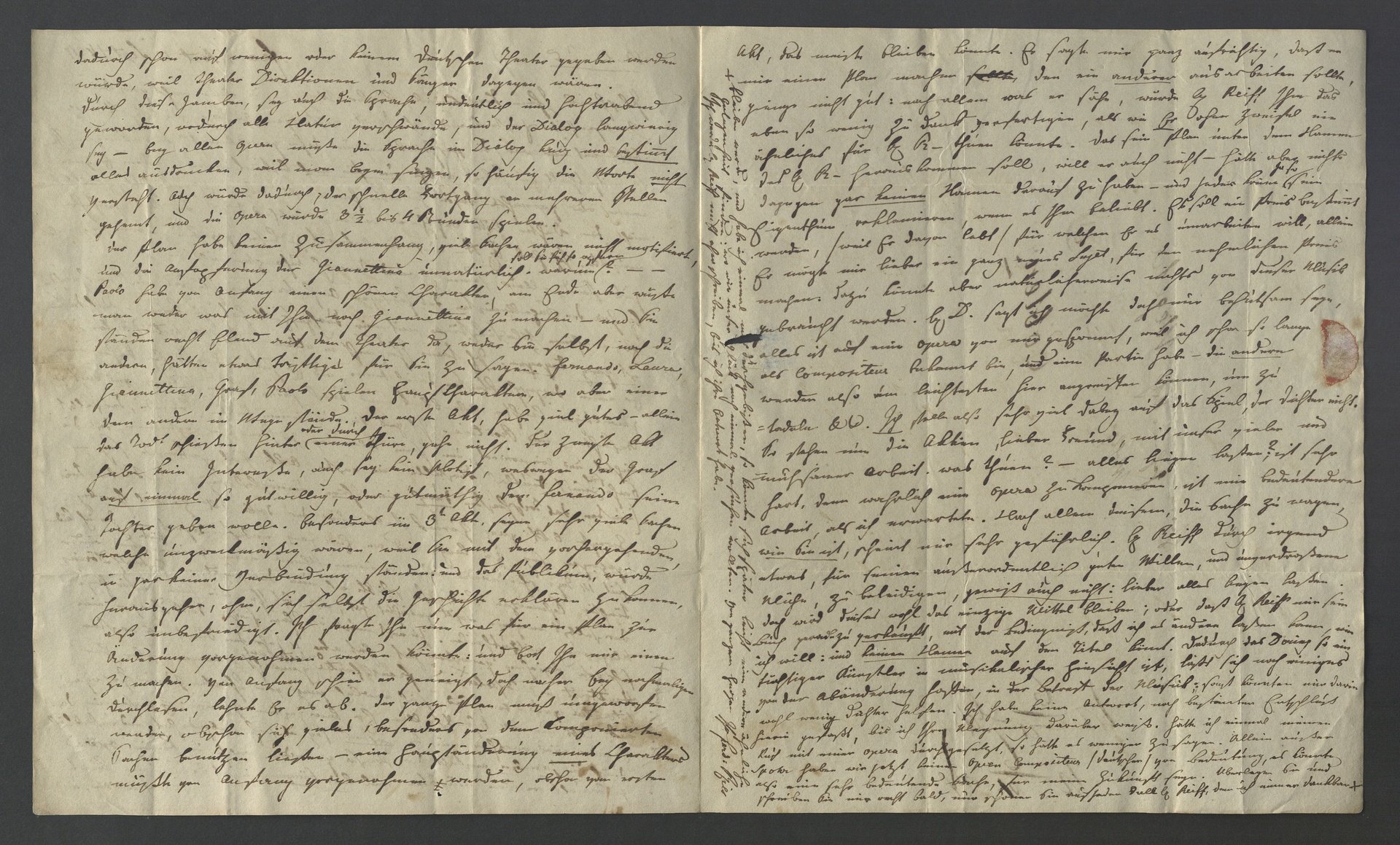 Ries hat die Oper "Die Räuberbraut" verschiedenen Fachleuten vorgelegt und ihre Meinungen eingeholt. Die vom böhmischen Bariton und Musikdirektor des Prager Theaters Franz Hauser (1794-1870) erhaltenen ablehnenden Bemerkungen hatte Ries schon Wegeler mitgeteilt, obwohl sie nur für Ries selbst bestimmt waren. Hauser versicherte daraufhin, dass er "gewiß nicht dem Dichter hätte wehthuen wollen." Auch der Musikdirektor der Frankfurter Oper, der Geiger, Dirigent und Komponist Karl Ferdinand Wilhelm Guhr (1787-1848) kritisierte das Libretto. Ein dritter Freund, "der selbst dichtet und componiert", beurteilte den zweiten und dritten Akt negativ. Besonders angetan ist Ries von Georg Dörings (1789-1833) Vorschlägen. Der Oboist und Schriftsteller Döring hat Erfahrung mit Operntexten und ist bereit, die Umarbeitungen gegen Honorar vorzunehmen. Er empfiehlt, auf Jamben, besonders in den Dialogen, zu verzichten. Sämtliche Charaktere und die Handlung müssten neu konzipiert werden, wobei aus dem ersten Akt einiges zu übernehmen sei. Vorzugsweise würde Döring ein neues Textbuch schreiben. Bleibt es bei einer Umarbeitung, müsse Johann Joseph Reiff seine Rechte am Text abtreten und dürfe nicht als Autor genannt werden. In dieser Zwickmühle sieht Ries zwei Handlungsmöglichkeiten: "alles liegen lassen", um Reiff nicht "für seinen außerordentlich guten Willen, und unverdroßene Mühe, zu beleidigen" oder Reiff das Änderungsrecht am Libretto abzukaufen und keinen der beteiligten Textdichter im Titel der Oper zu nennen (was schließlich auch geschah: weder das Autograph noch die Erstausgabe enthalten den Namen eines Librettisten). Für Ries steht viel auf dem Spiel, schließlich möchte er sich mit seinem ersten musikdramatischen Werk als Opernkomponist etablieren und den Wettbewerb mit Louis Spohr (1784-1859), dem einzigen deutschen Opernkomponisten "von Bedeutung", aufnehmen. Ries wird erst eine Entscheidung treffen, wenn er Wegelers Meinung erhalten hat. (F.G.)