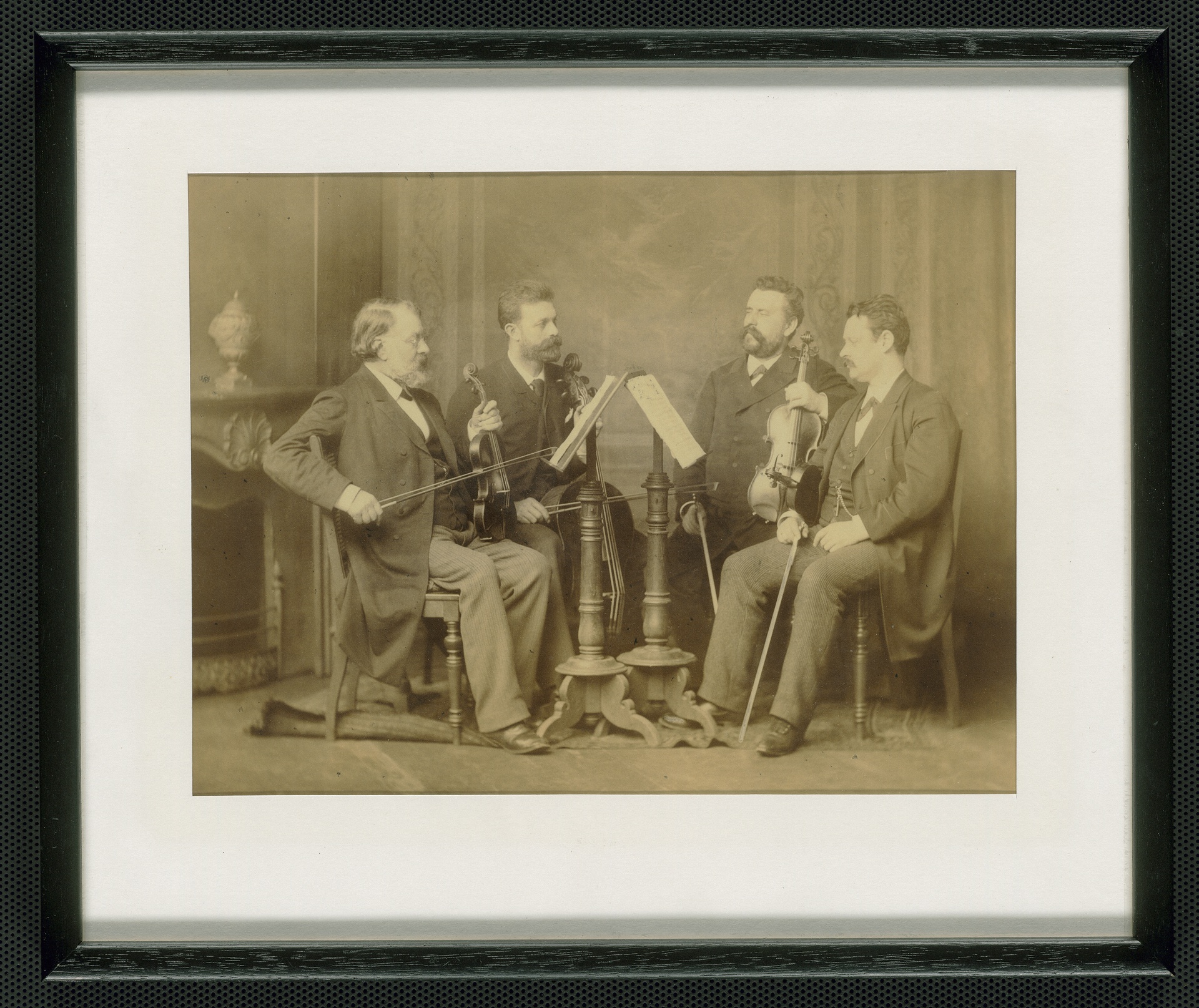 Das Joachim-Quartett, um 1900, ganzfigurig sitzend mit Instrumenten (Joseph Joachim, Robert Hausmann, Emanuel Wirth, Carl Halir) - Anonyme Fotografie