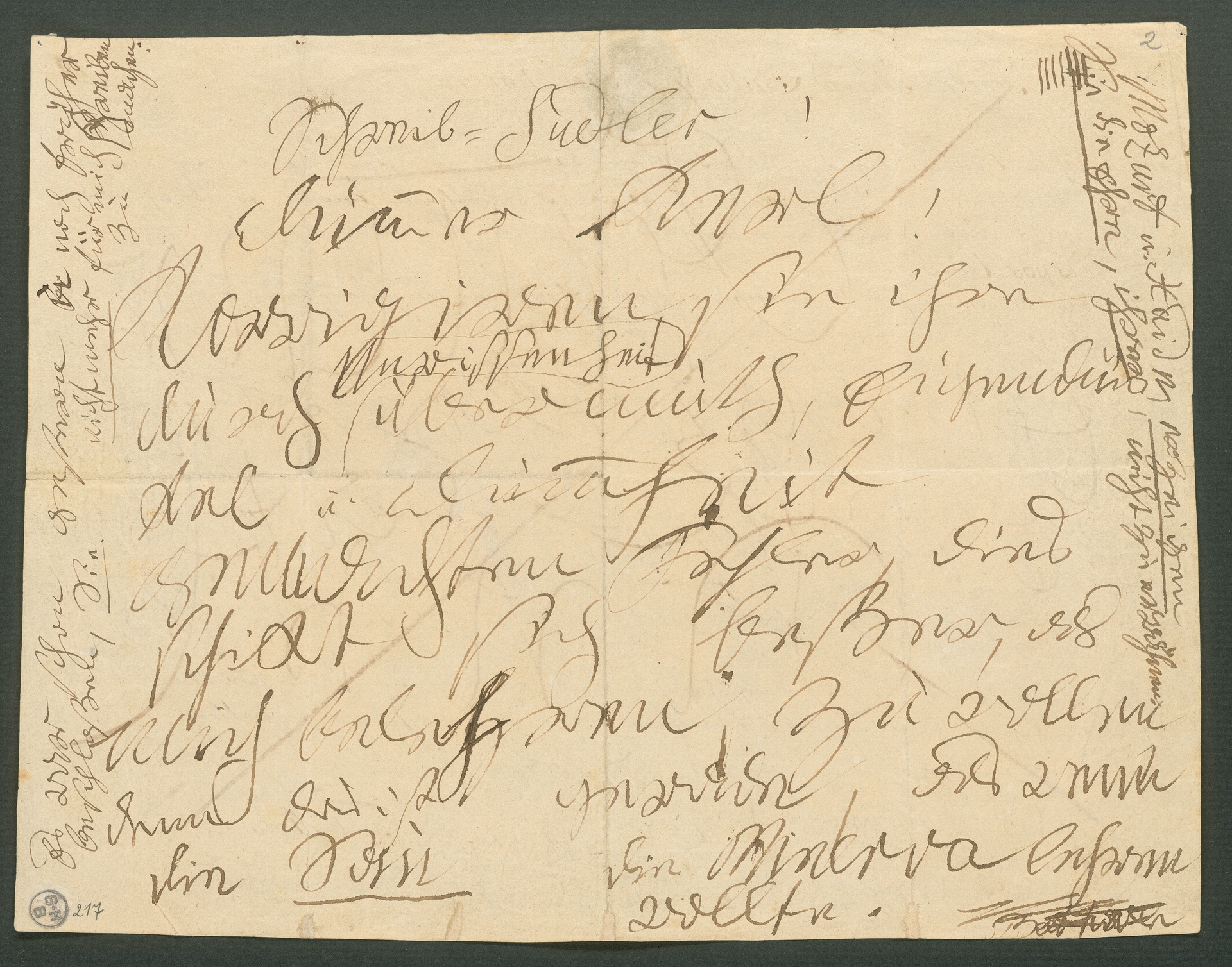 Ferdinand Wolanek, Brief an Ludwig van Beethoven, Wien, zwischen dem 23. und 26. März 1825, mit Anmerkungen und einem Antwortentwurf Beethovens, Autograph