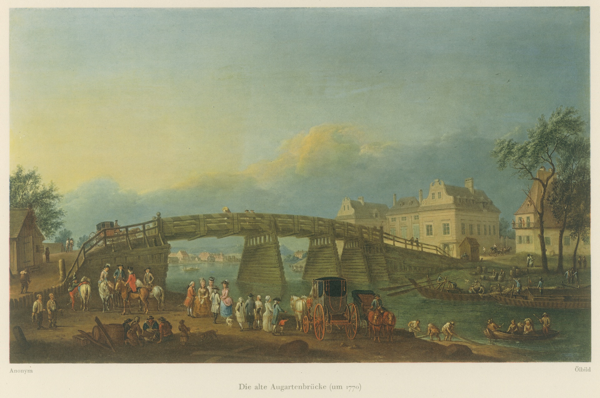 Die alte Augartenbrücke in Wien, um 1770 - Reproduktion eines anonymen Ölgemäldes