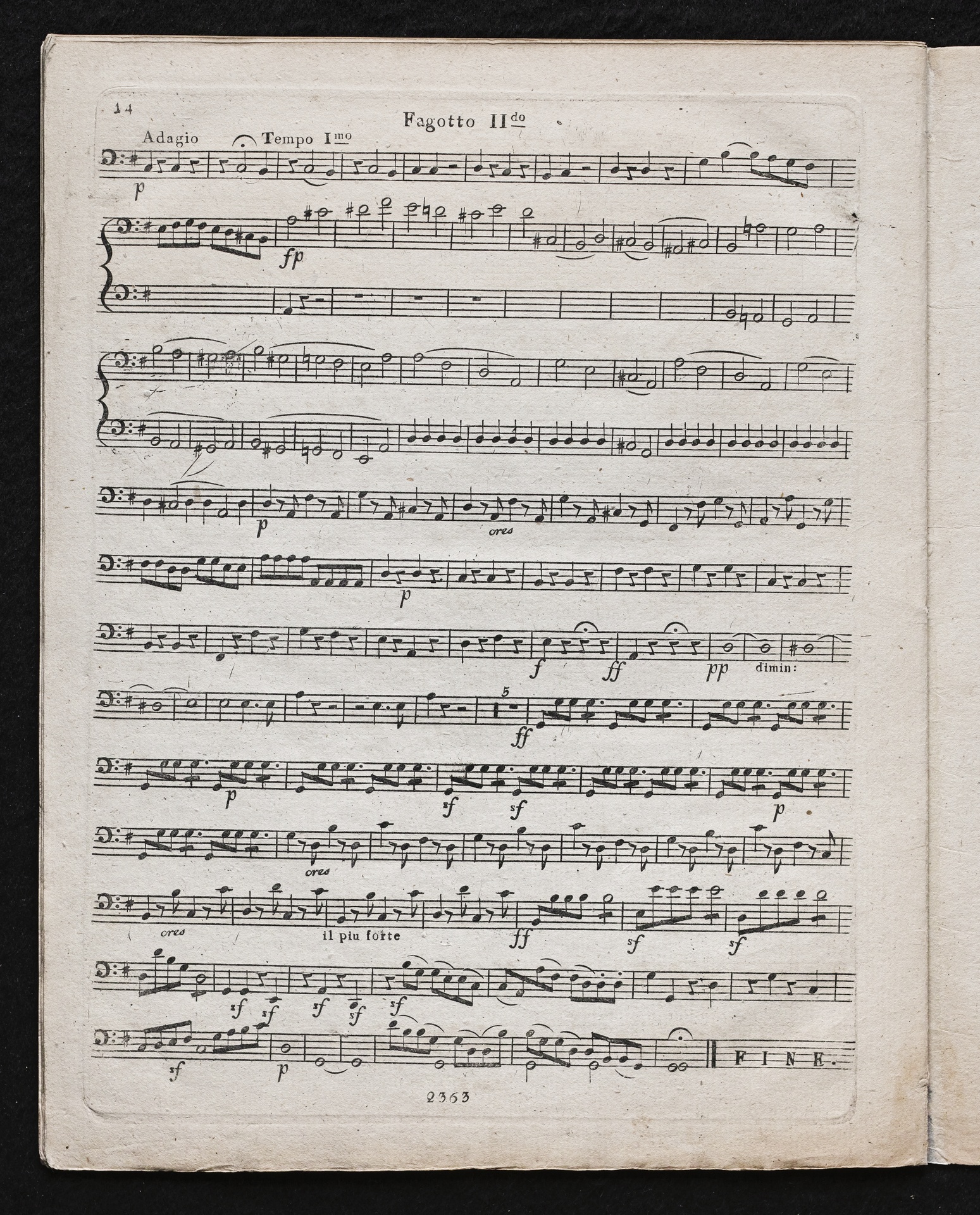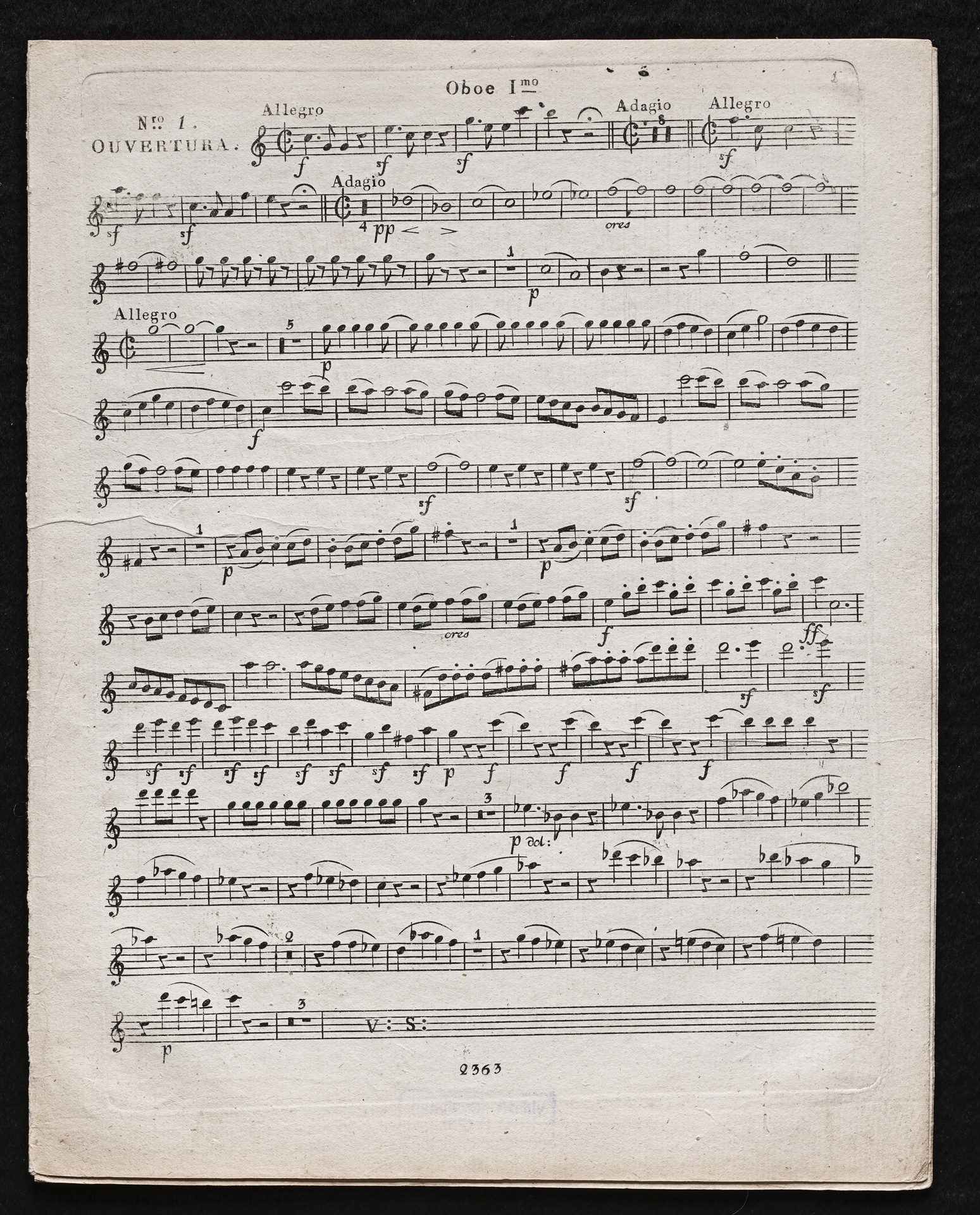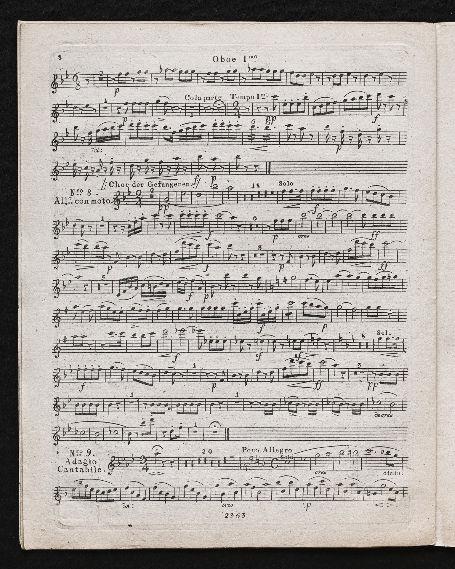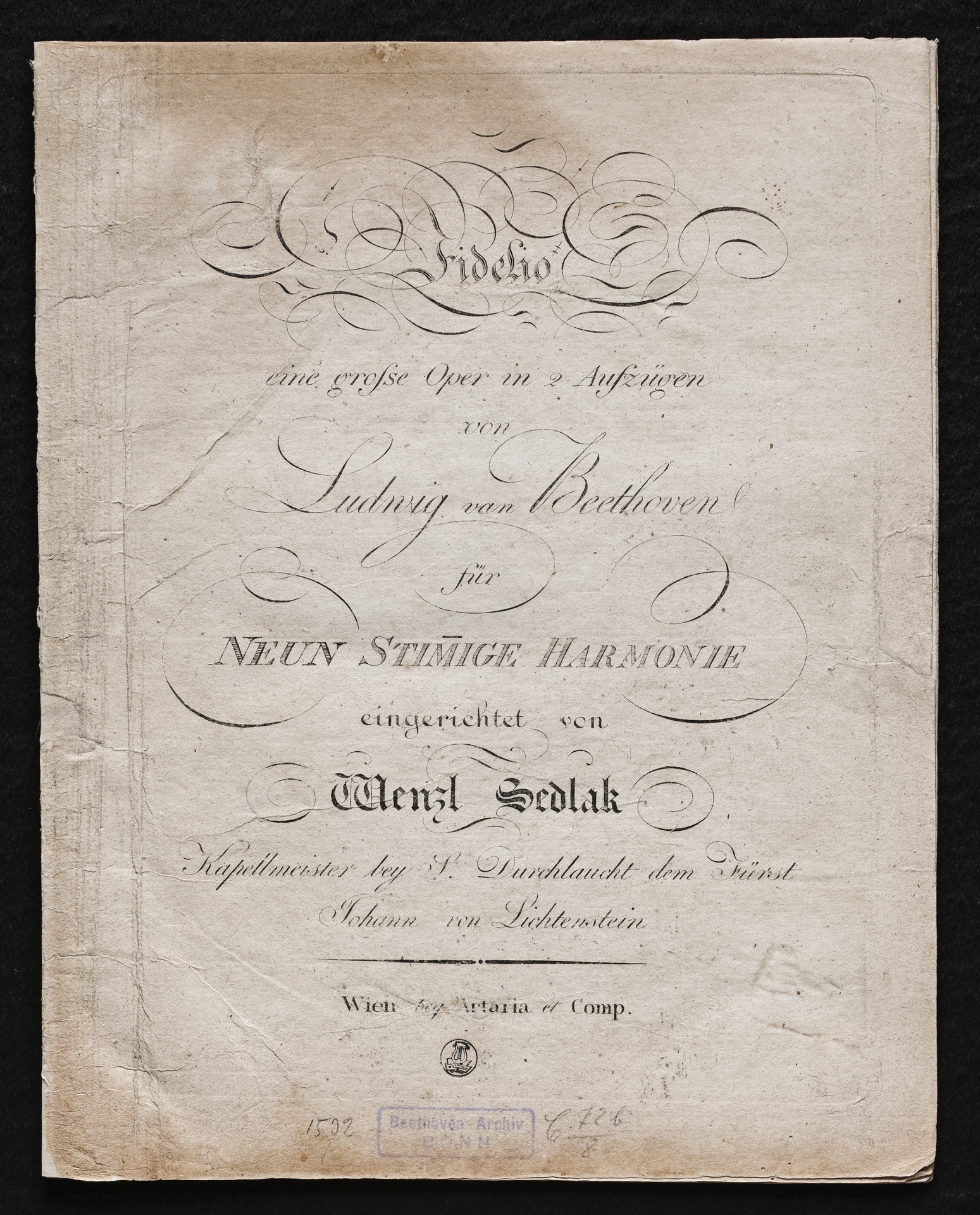 Ludwig van Beethoven, Fidelio op. 72, 3. Fassung 1814, Bearbeitung für 2 Oboen, 2 Klarinetten, 2 Hörner, 2 Fagotte und Kontrafagott, Stimmen von Wenzel Sedlak, Artaria, 2363