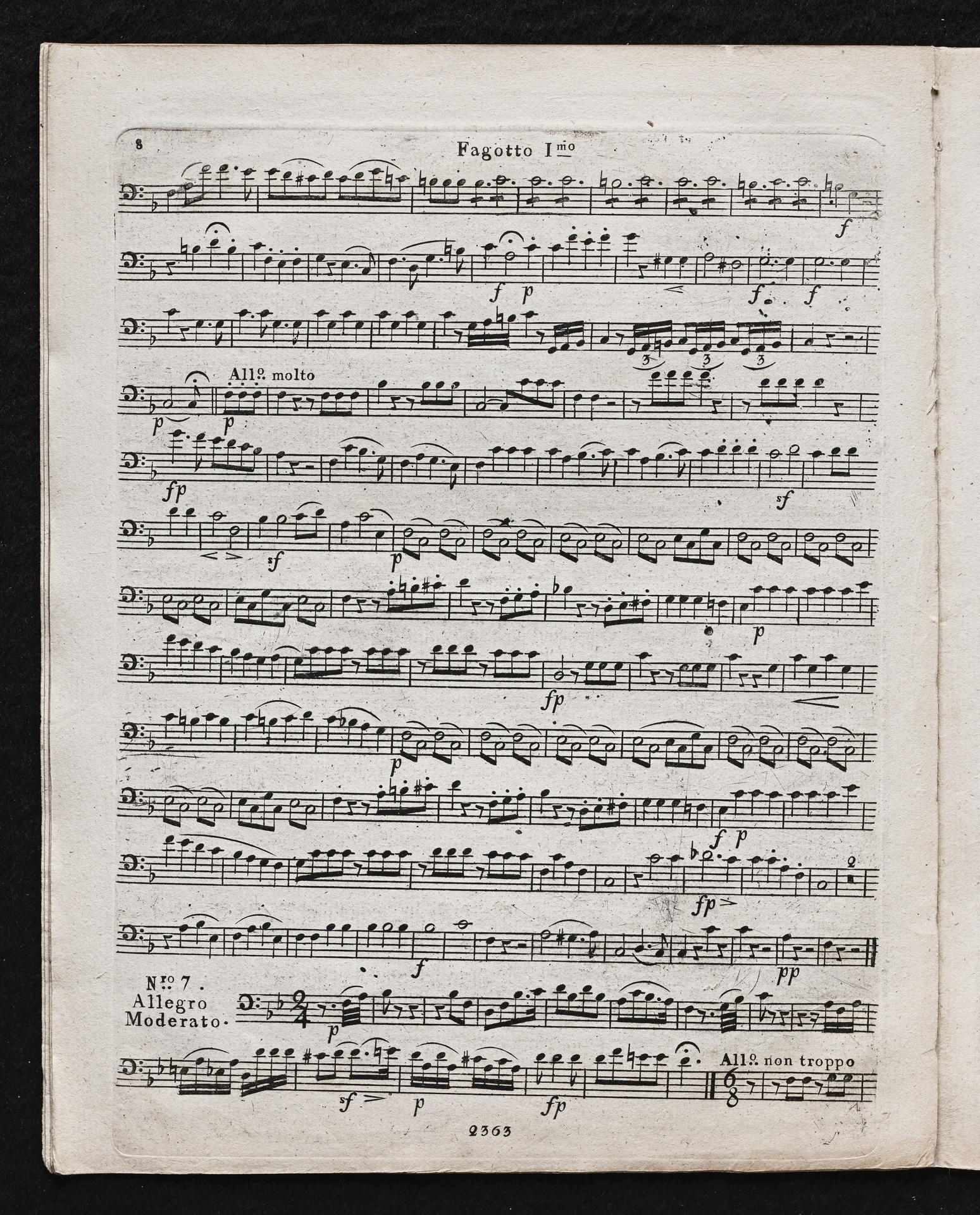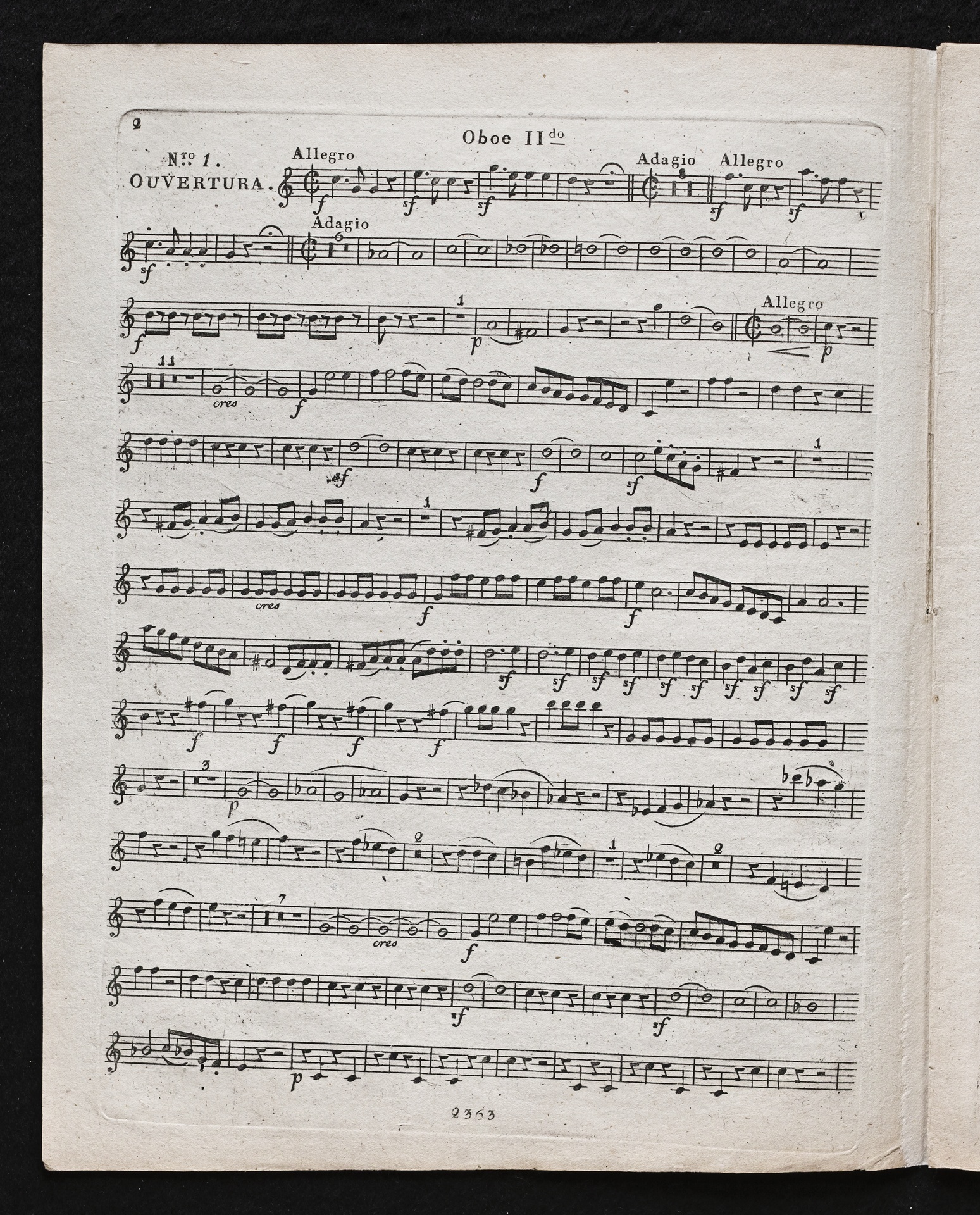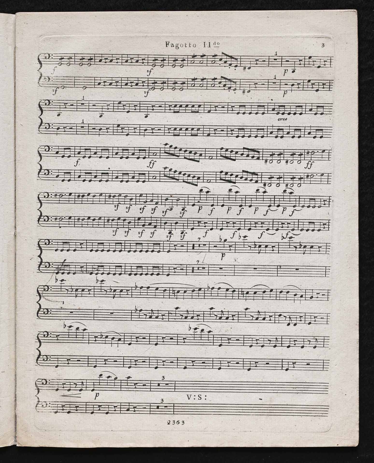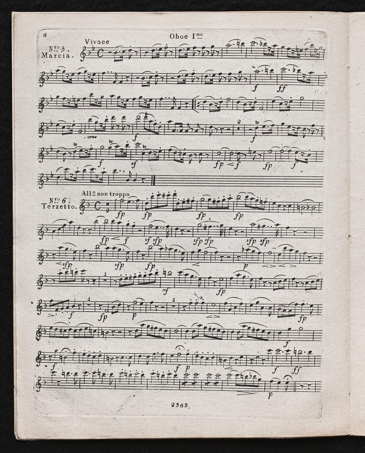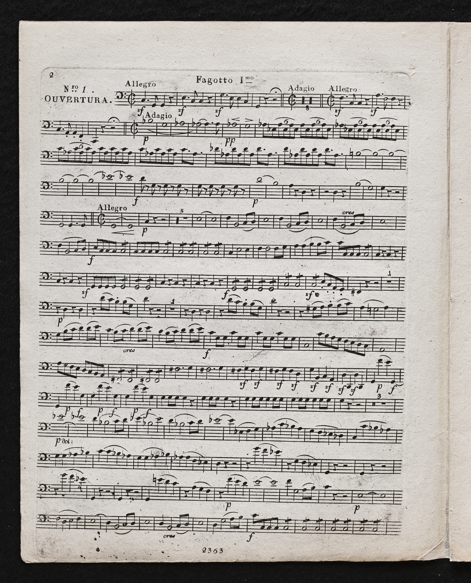 Ludwig van Beethoven, Fidelio op. 72, 3. Fassung 1814, Bearbeitung für 2 Oboen, 2 Klarinetten, 2 Hörner, 2 Fagotte und Kontrafagott, Stimmen von Wenzel Sedlak, Artaria, 2363