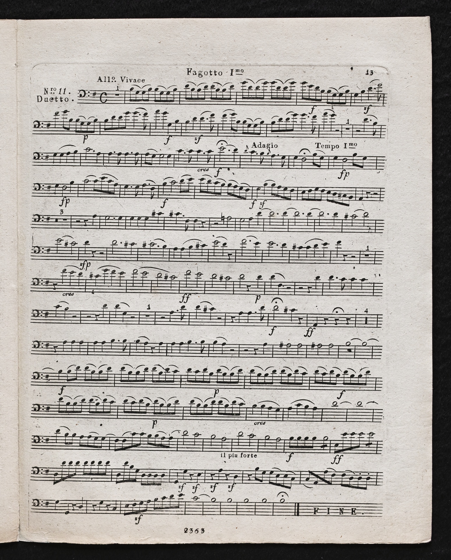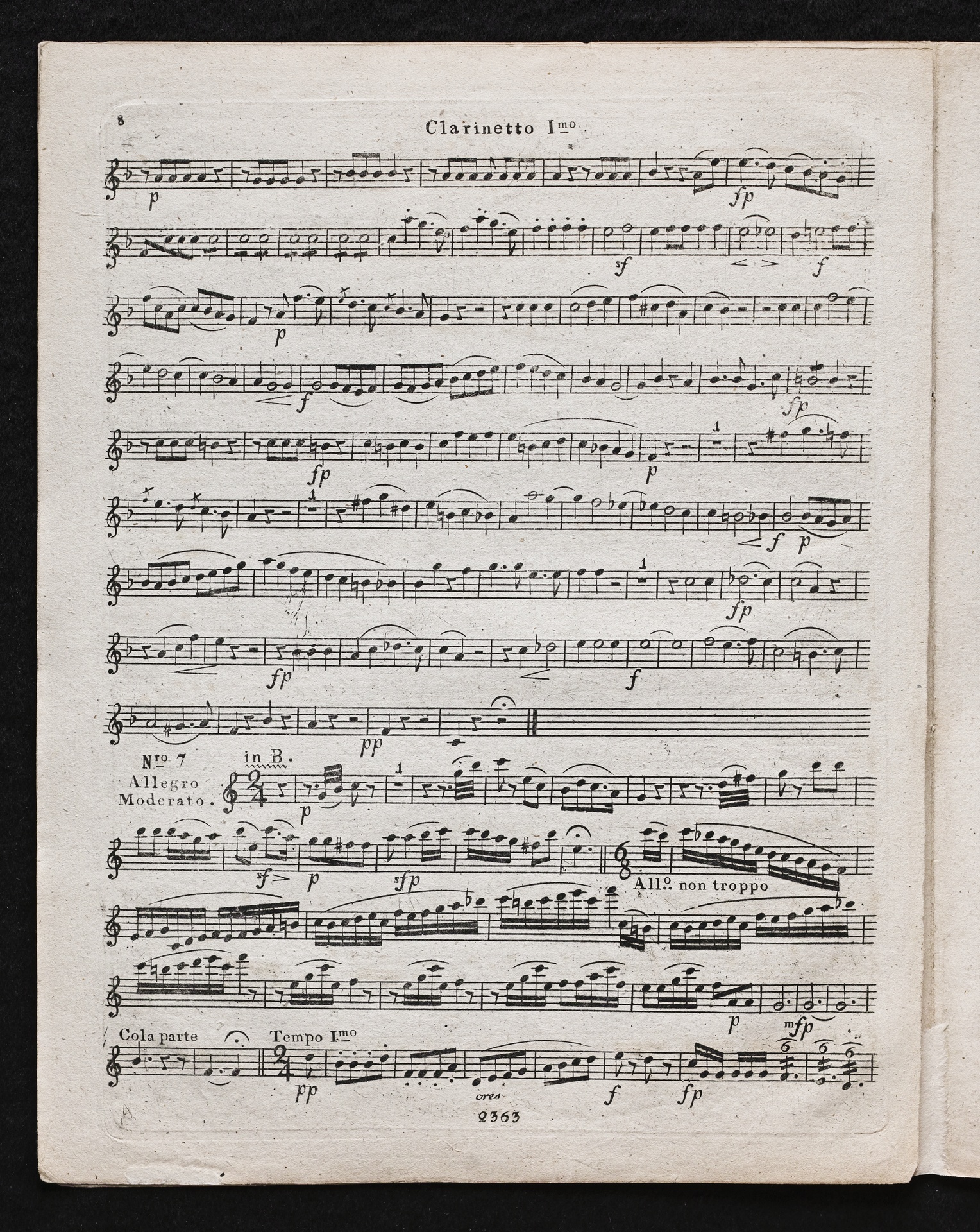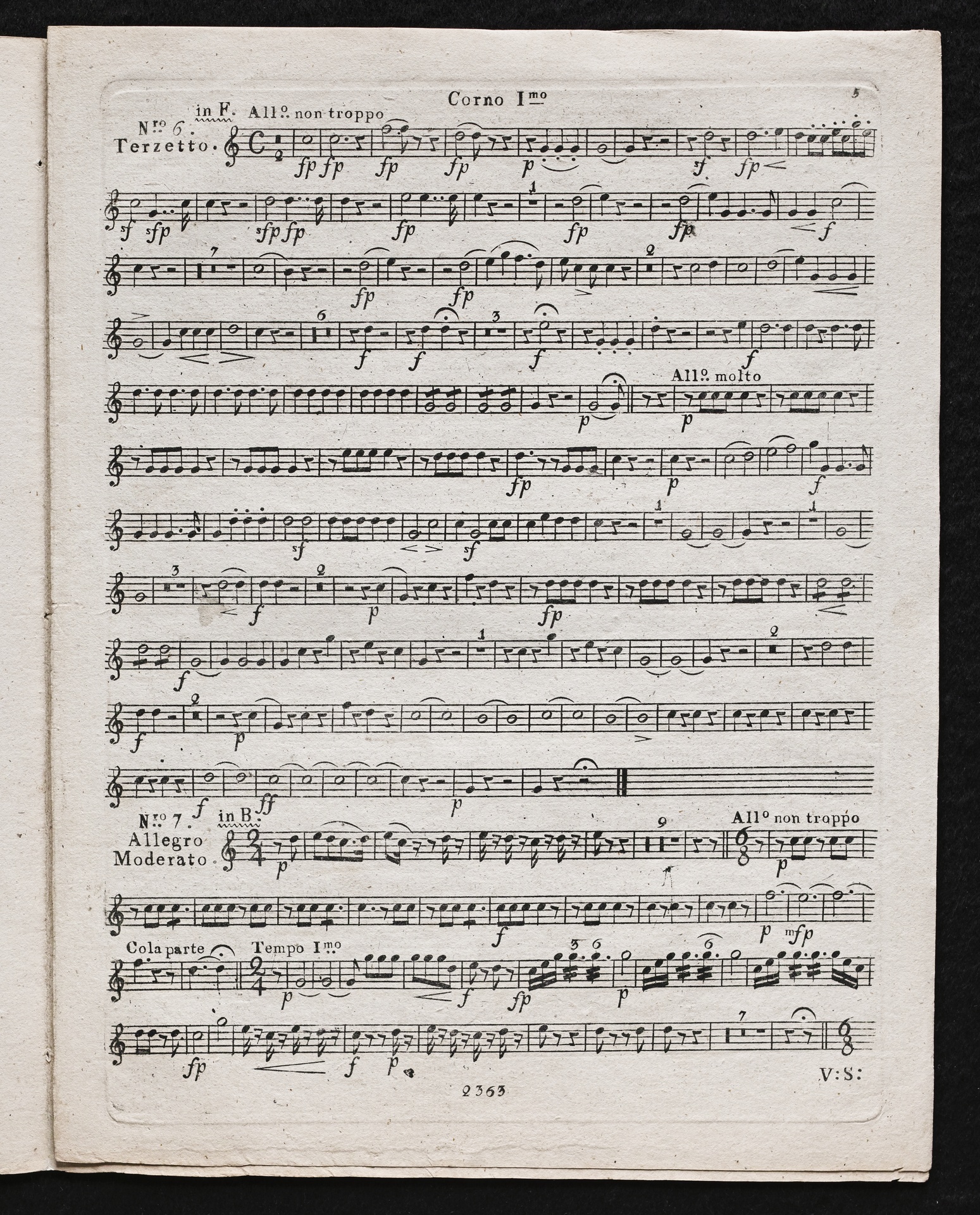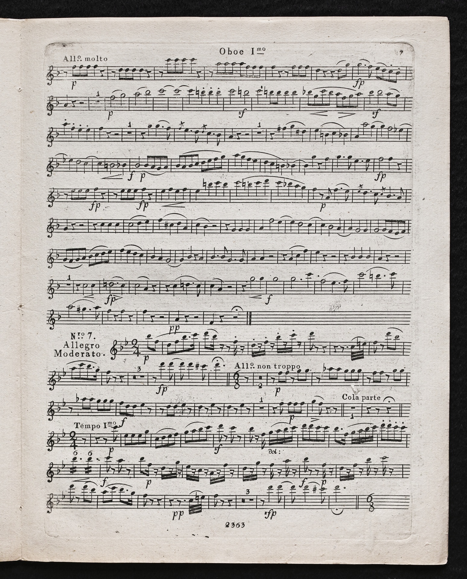 Ludwig van Beethoven, Fidelio op. 72, 3. Fassung 1814, Bearbeitung für 2 Oboen, 2 Klarinetten, 2 Hörner, 2 Fagotte und Kontrafagott, Stimmen von Wenzel Sedlak, Artaria, 2363