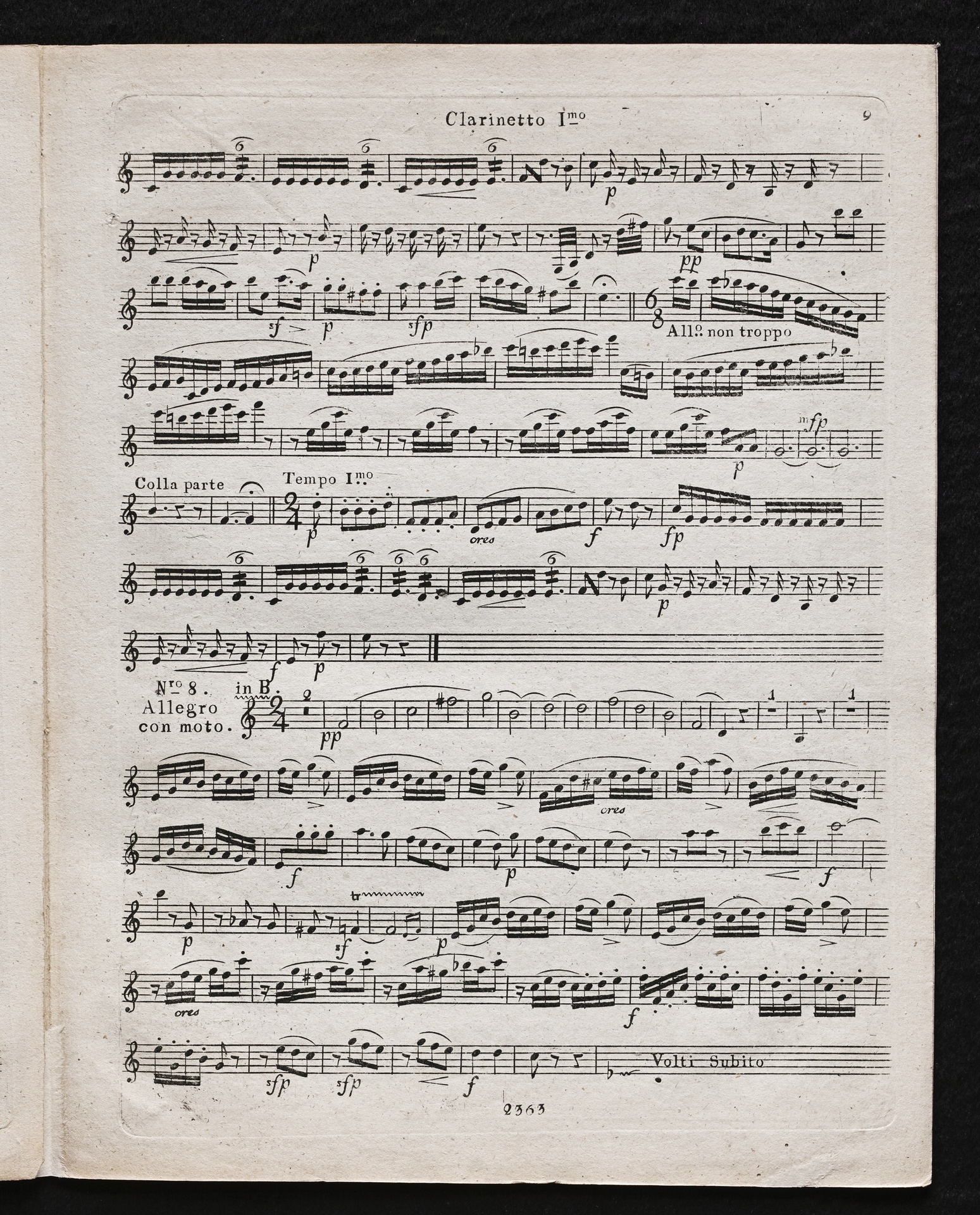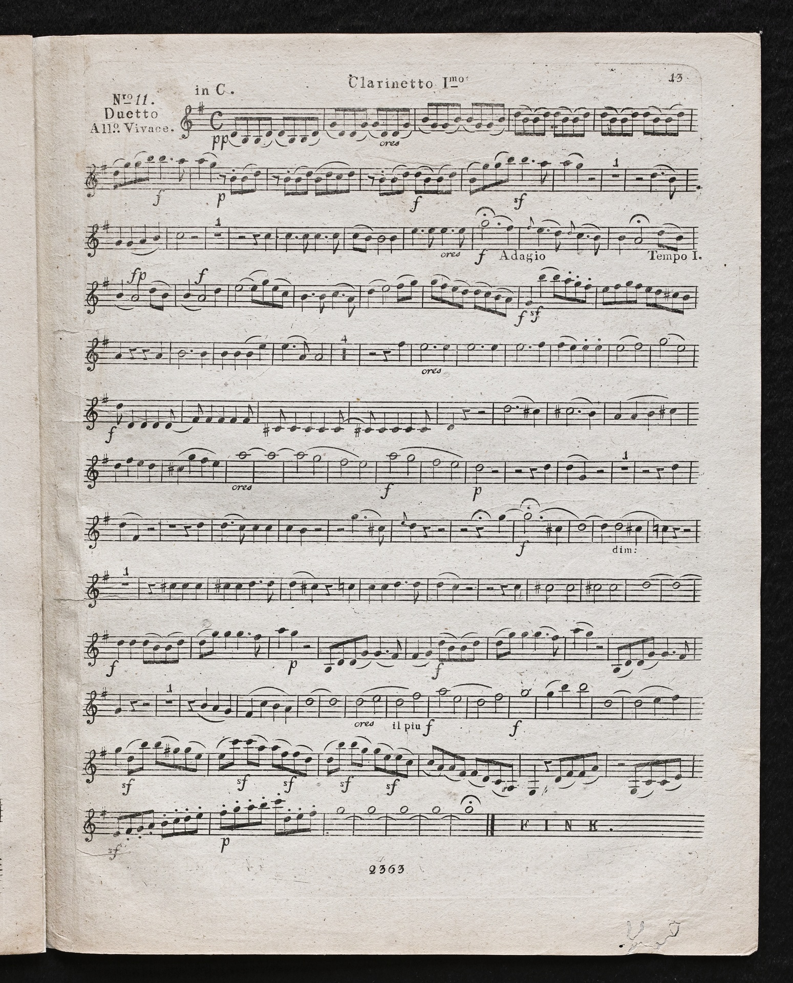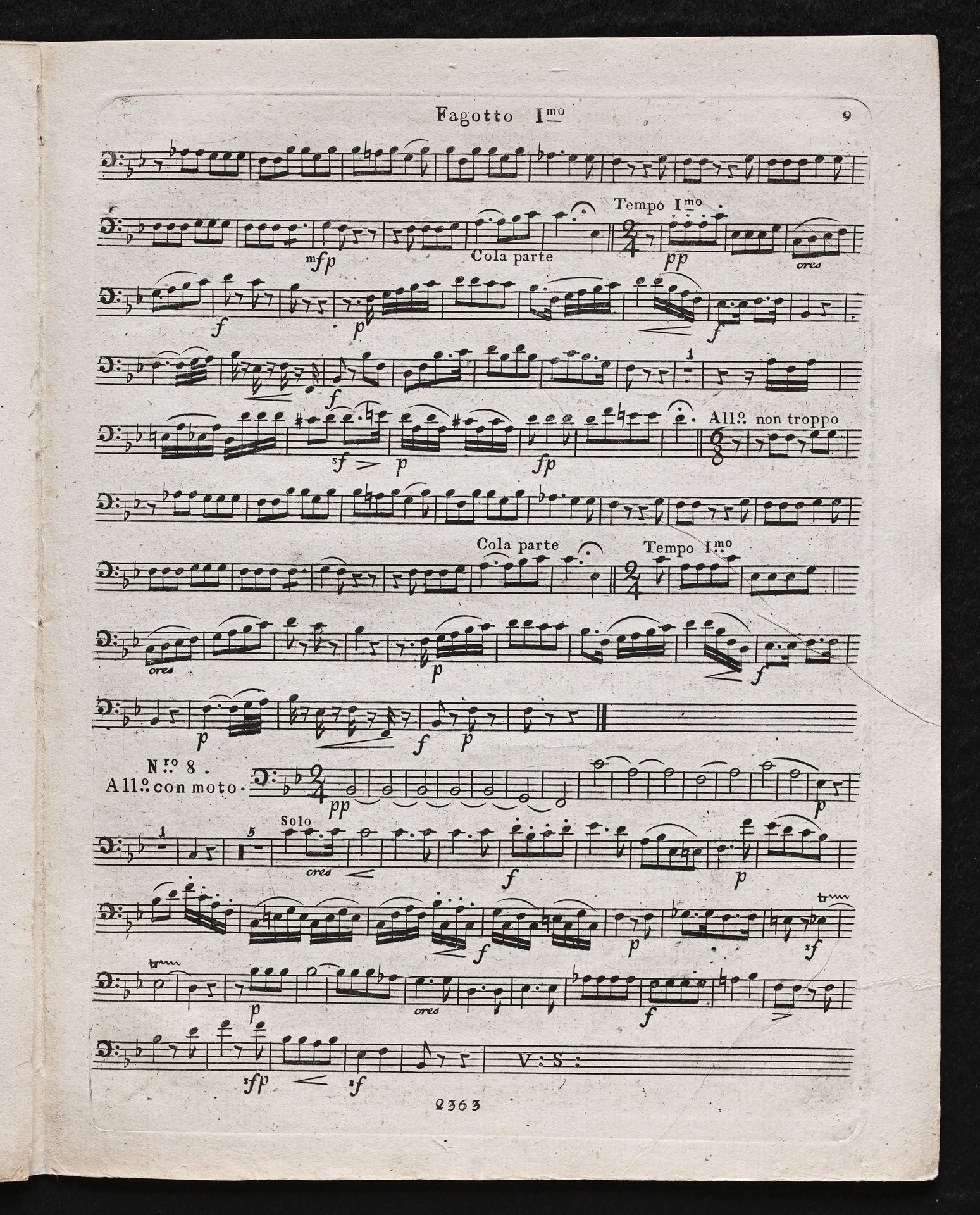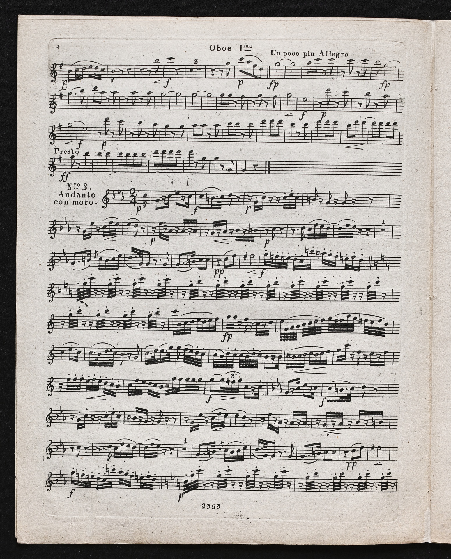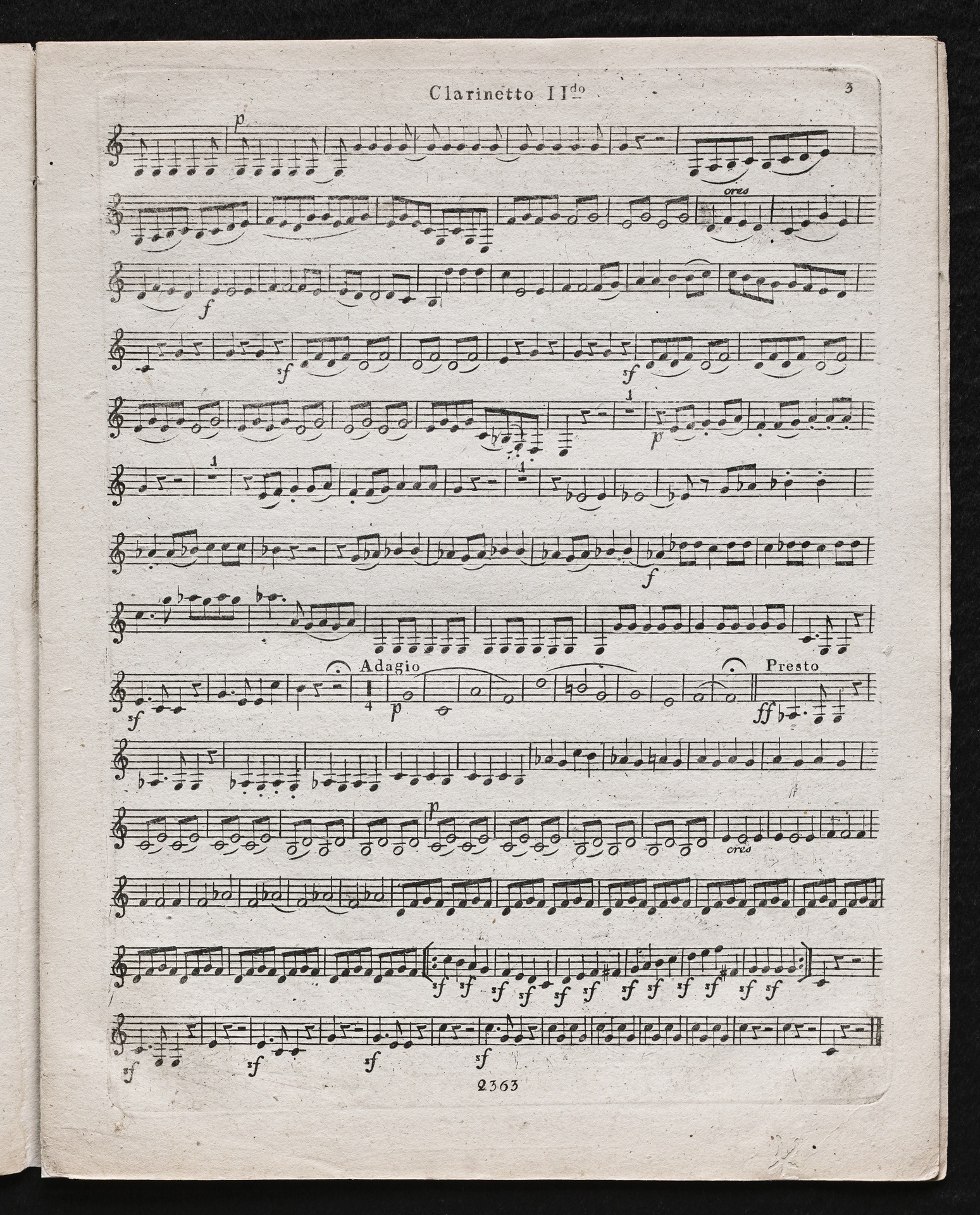 Ludwig van Beethoven, Fidelio op. 72, 3. Fassung 1814, Bearbeitung für 2 Oboen, 2 Klarinetten, 2 Hörner, 2 Fagotte und Kontrafagott, Stimmen von Wenzel Sedlak, Artaria, 2363