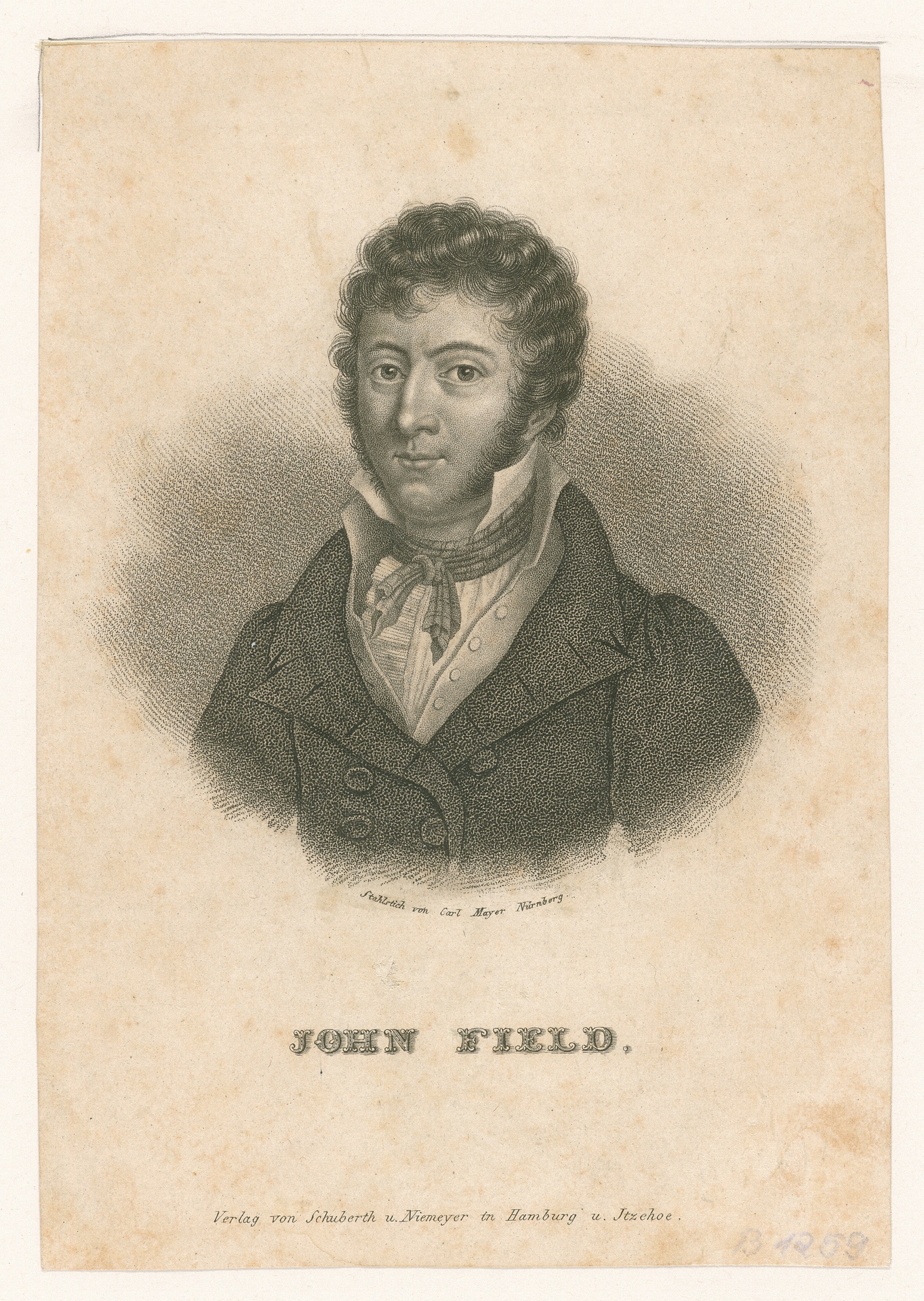 John Field (1782-1837) - Stahlstich von Carl Mayer, Nürnberg, erschienen bei Schuberth und Niemeyer, Hamburg und Itzehoe, um 1830