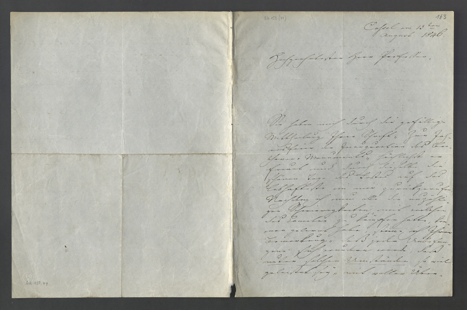 Louis Spohr, Brief an Heinrich Carl Breidenstein in Bonn, Kassel, 13. August 1846, Autograph