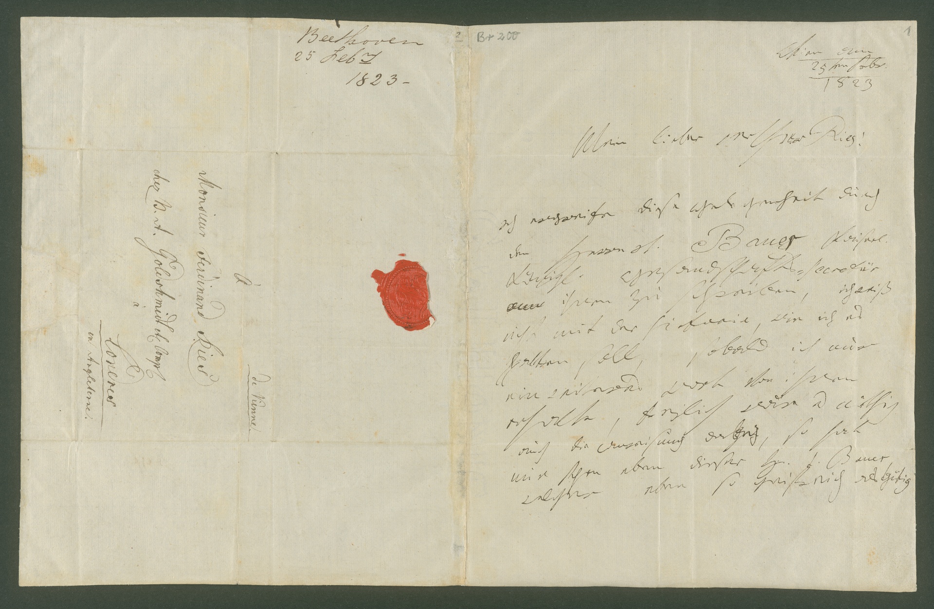 Ludwig van Beethoven, Brief an Ferdinand Ries in London, Wien, 25. Februar 1823, Autograph