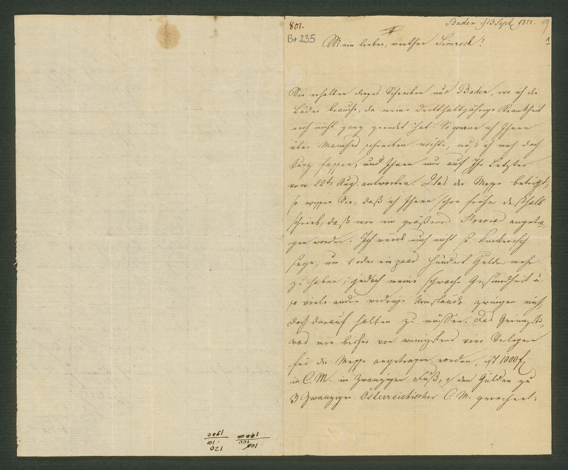 Ludwig van Beethoven, Brief an Nikolaus Simrock in Bonn, Baden, 13. September 1822