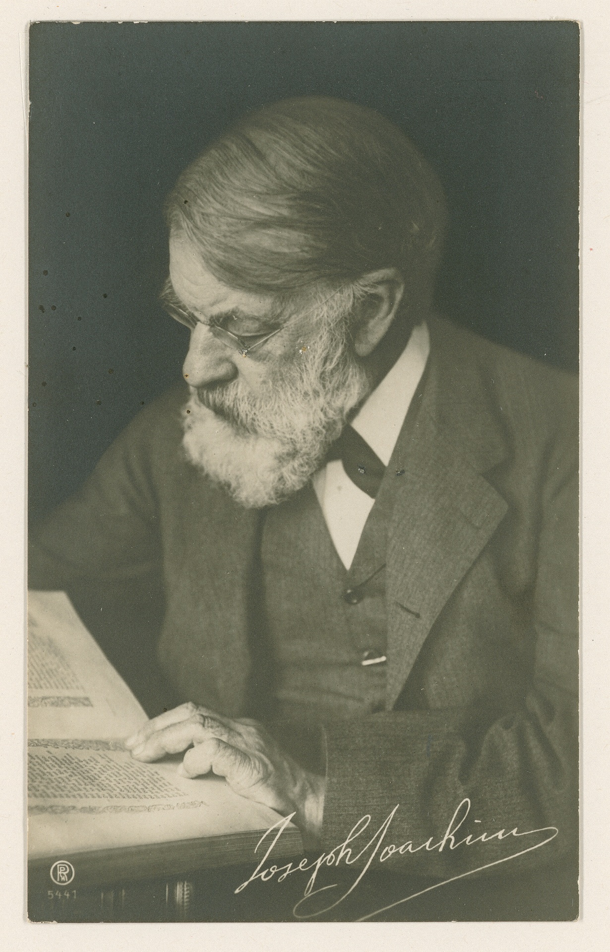 Bereits in jungen Jahren begann Joseph Joachim in Wien sein Musikstudium bei Joseph Böhm (1795-1876), der Ludwig van Beethoven noch persönlich gekannt hatte. Über seinen Lehrer hatte Joachim daher einen direkten Anknüpfungspunkt an die authentische Interpretation der Werke des von ihm sehr verehrten Komponisten. Er setzte seine Studien in Leipzig fort und galt bald als einer der hervorragendsten Violinvirtuosen Europas. Später wirkte Joachim selbst als Lehrer am Leipziger Konservatorium und war in den Jahren 1849-1853 als Konzertmeister in Weimar tätig, wo er dem Kreis um Franz Liszt (1811-1886) nahestand. 1853 wurde er zum Königlichen Konzertmeister (1859 "Konzertdirektor") in Hannover ernannt, 1868 zum Direktor der neugegründeten Musikhochschule in Berlin.