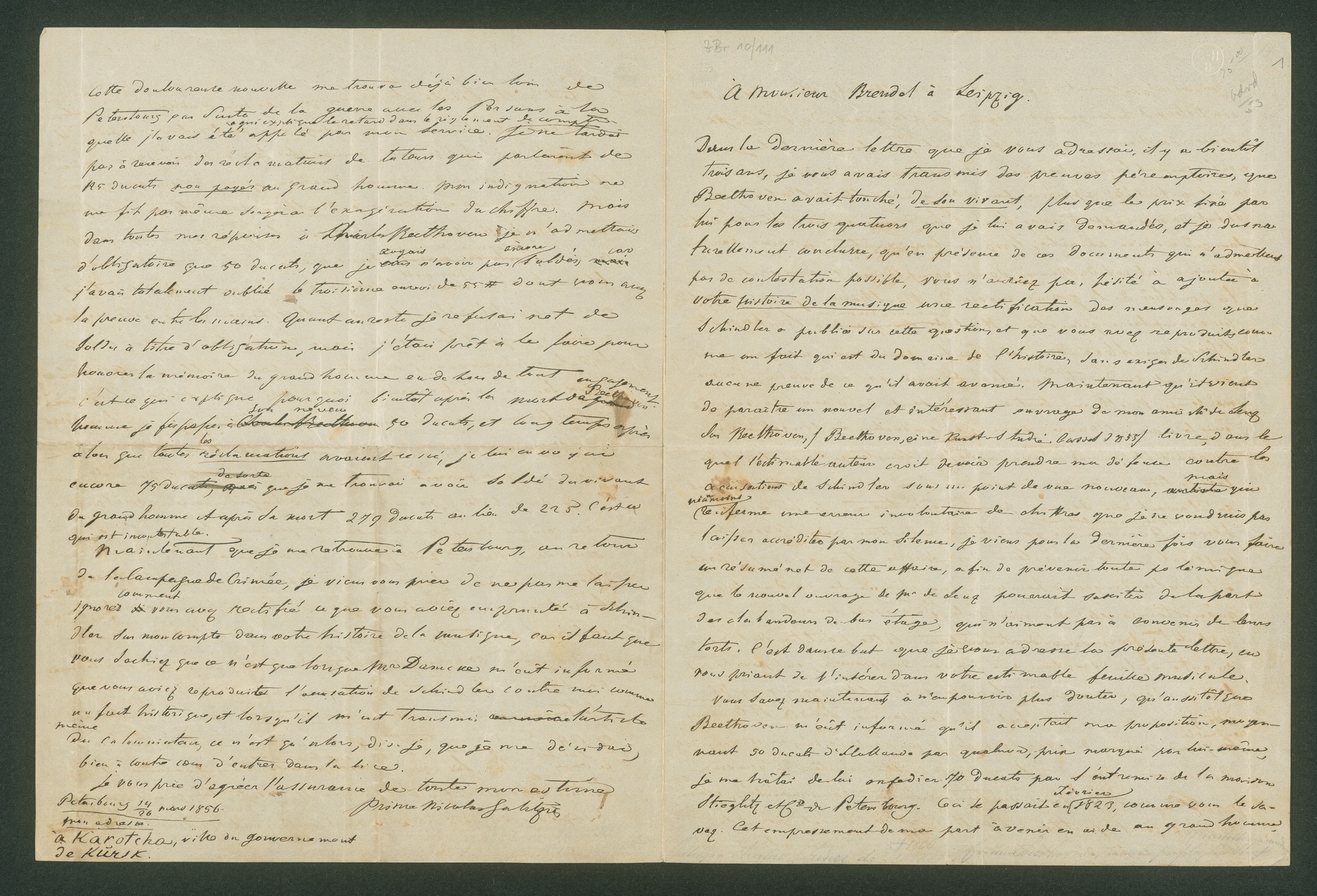 Nikolaus Galitzin, Brief an Karl Franz Brendel in Leipzig, Petersburg, 14. März 1856, Autograph