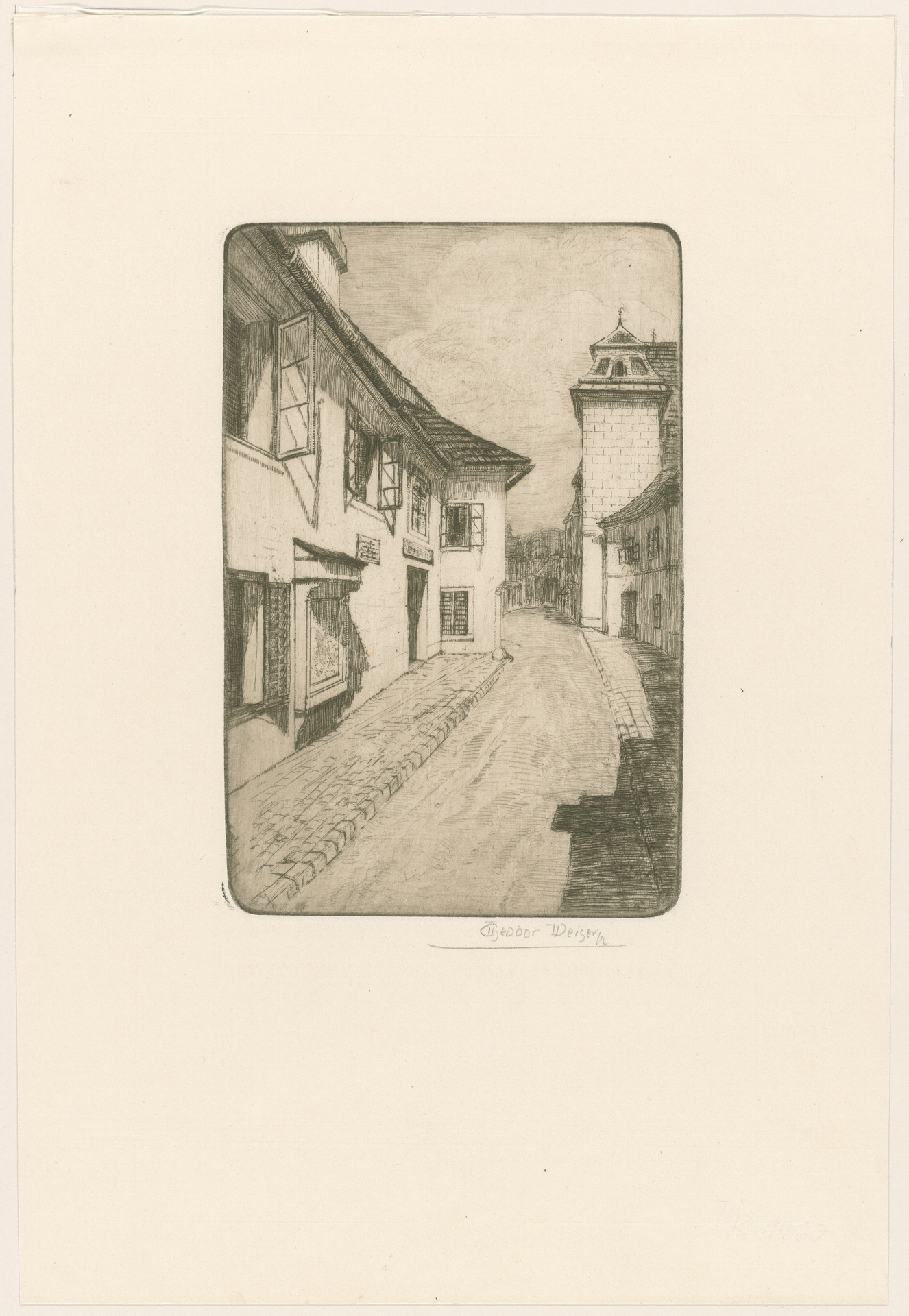 Wien, Heiligenstadt, Probusgasse 6, Wohnung von Ludwig van Beethoven - Radierung von Theodor Weiser nach einer eigenen Zeichnung, Wien, um 1920
