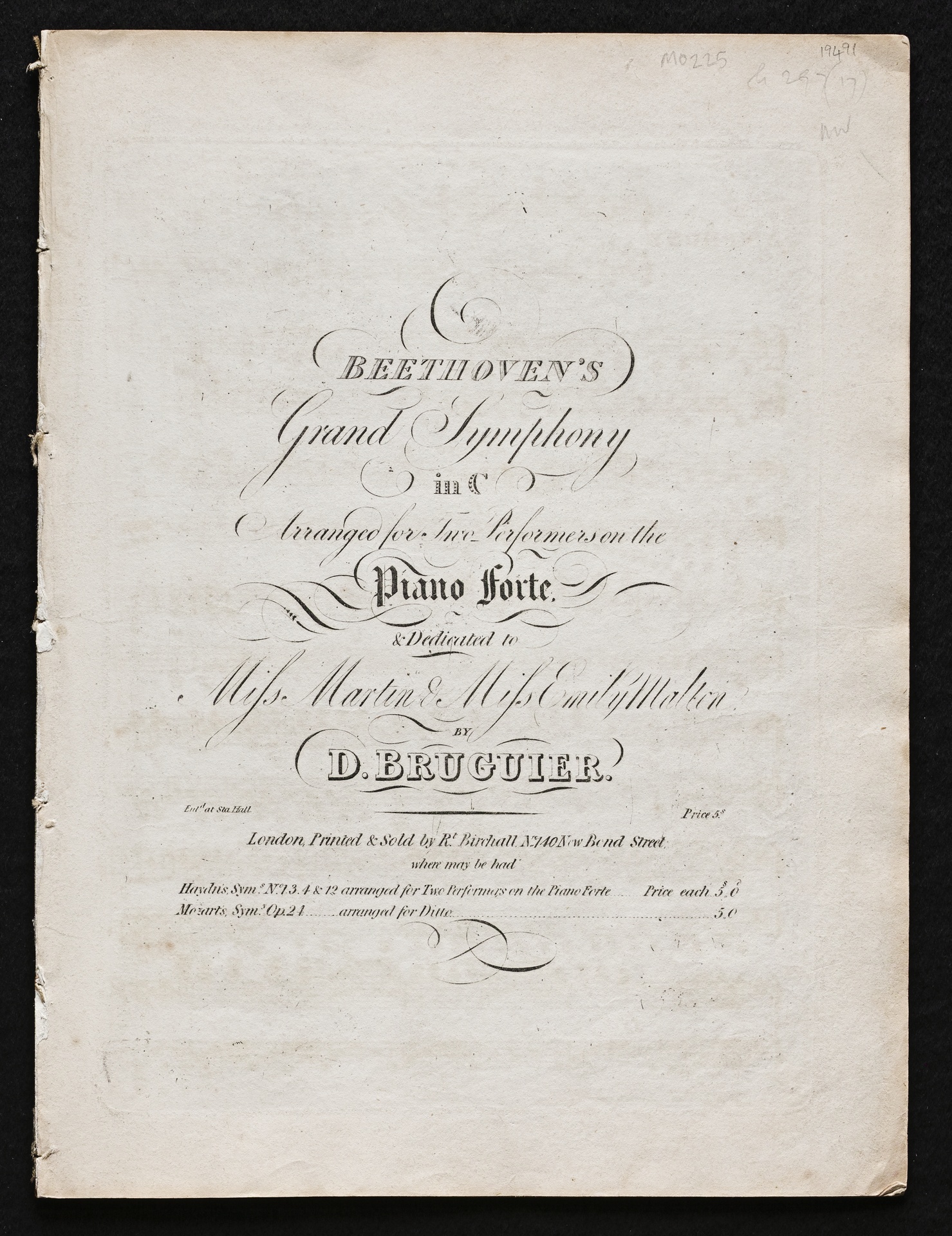 Ludwig van Beethoven, Sinfonie Nr. 1 (C-Dur) op. 21, Bearbeitung für Klavier zu 4 Händen von David Bruguier, Birchall