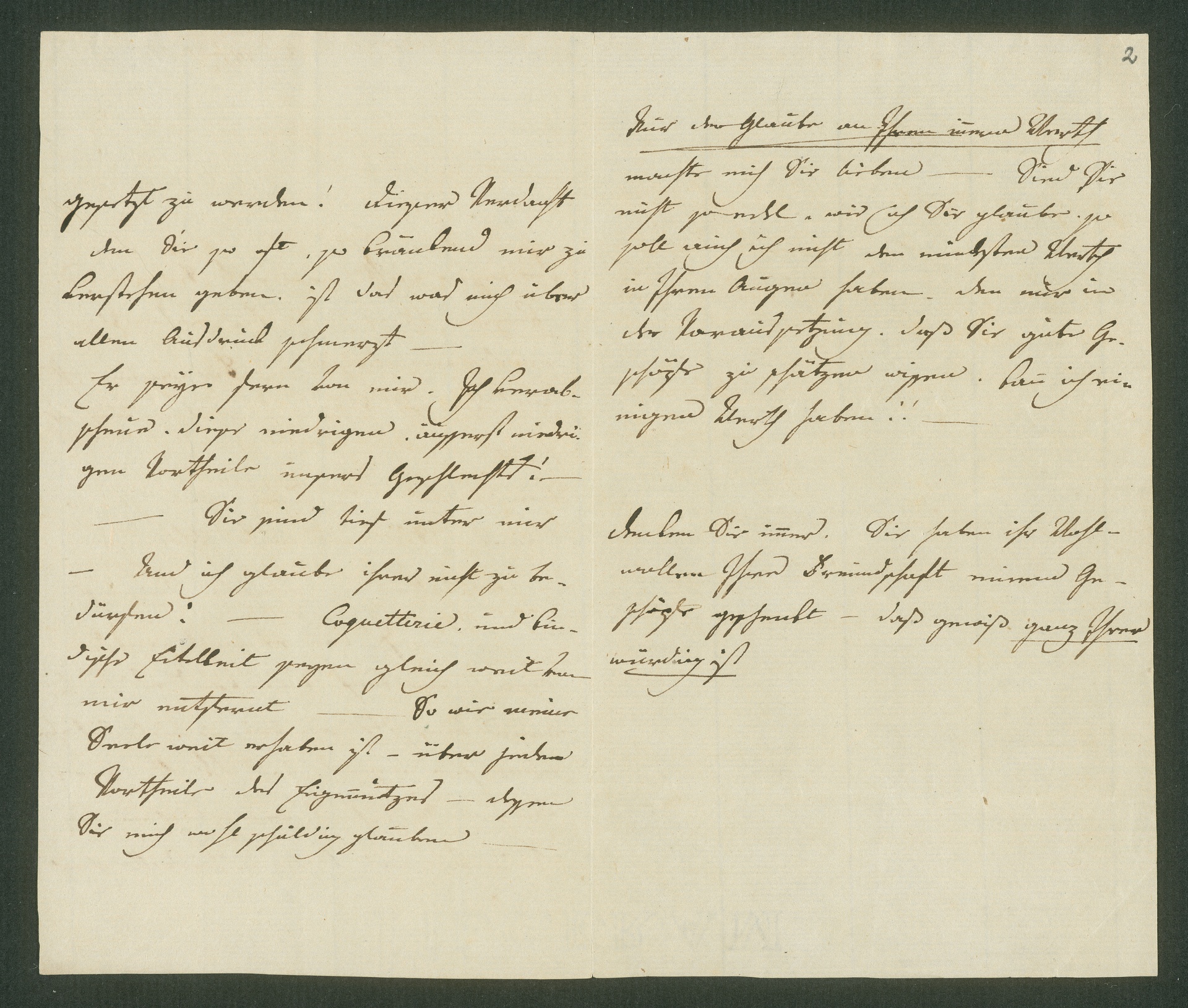 Offenbar hatte Beethoven Josephine Deym durch seine Eifersucht gekränkt. In diesem Briefkonzept betont Josephine von Deym, sie sei enttäuscht und verletzt, wenn ihr Koketterie oder ähnliches nachgesagt würde.