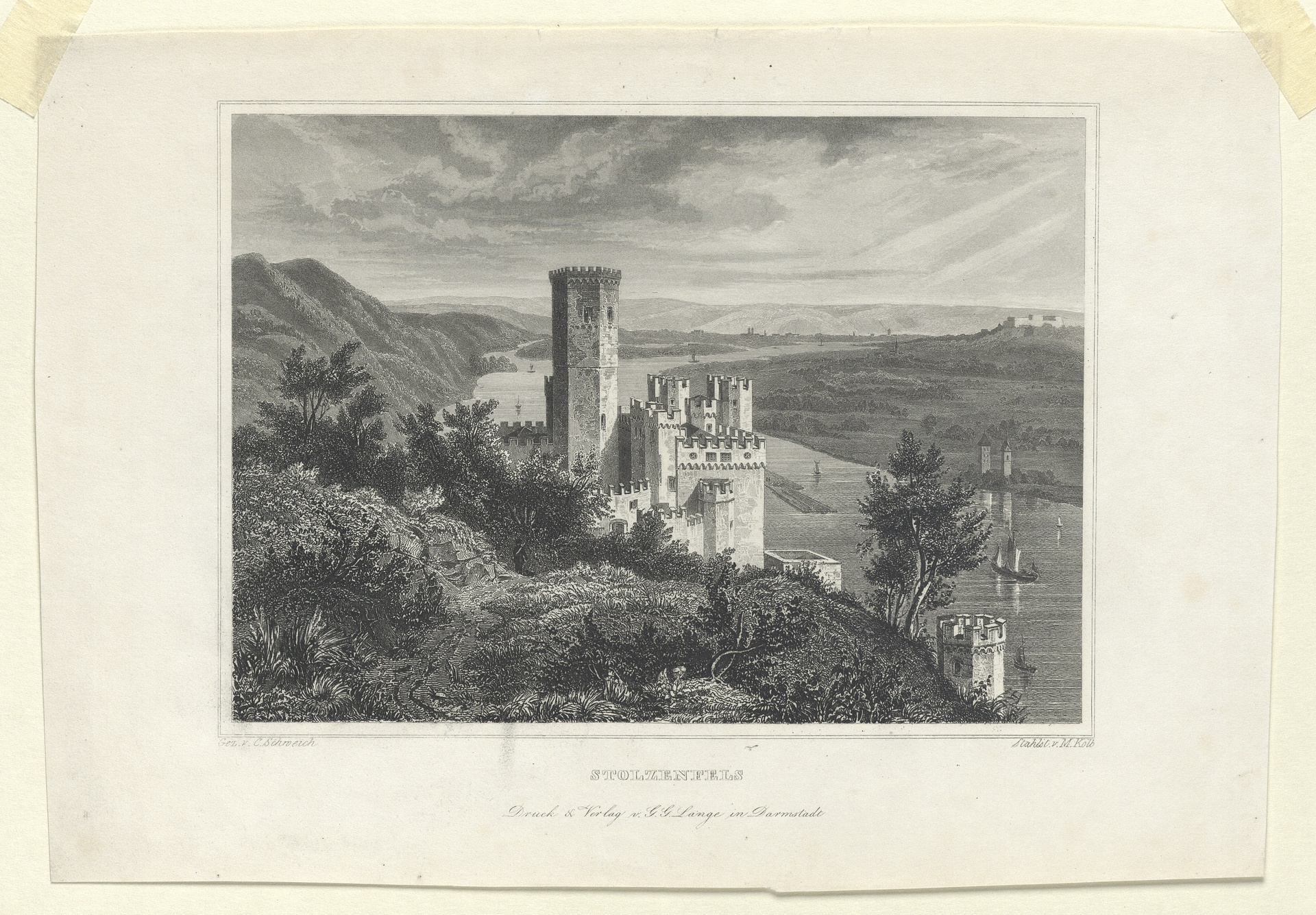 Schloß Stolzenfels bei Koblenz, Mitte 19. Jahrhundert - Stahlstich, wohl von Joseph Maximilian Kolb, nach einer Zeichnung von Karl Schweich