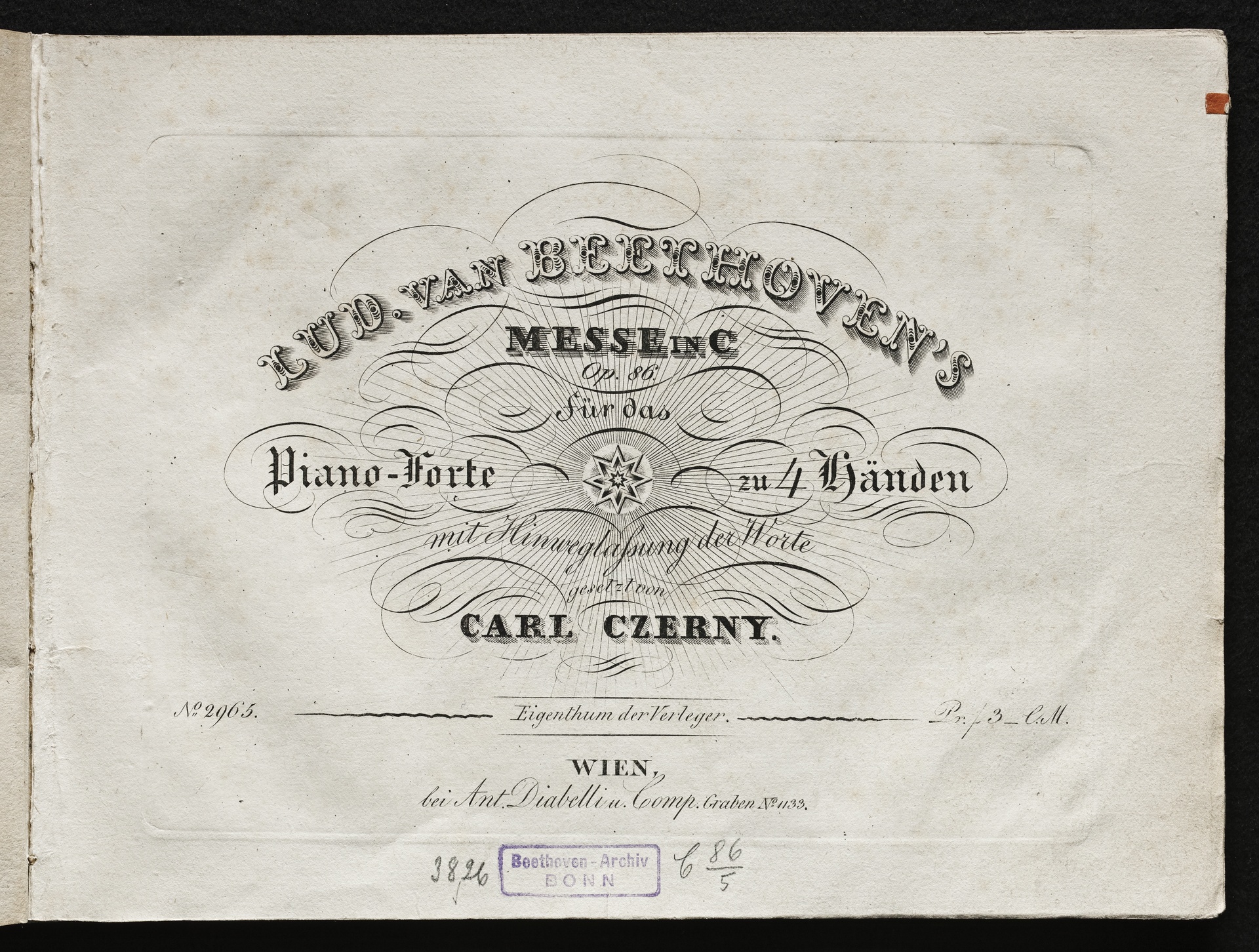 Ludwig van Beethoven, Messe für vier Solostimmen, Chor und Orchester (C-Dur) op. 86, Bearbeitung für Klavier zu 4 Händen von Carl Czerny, Diabelli, 2965