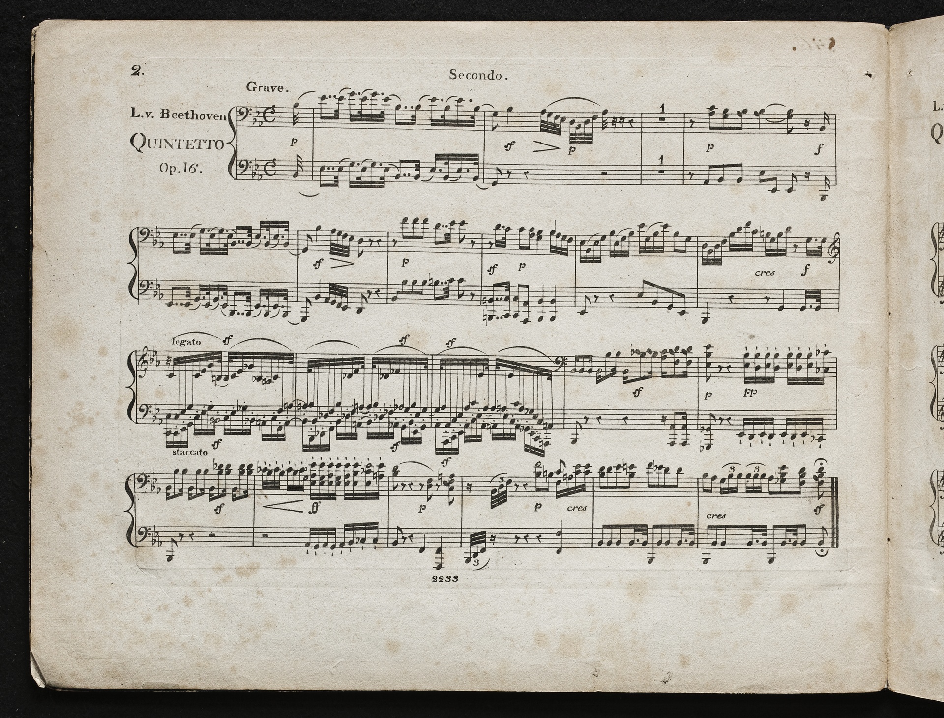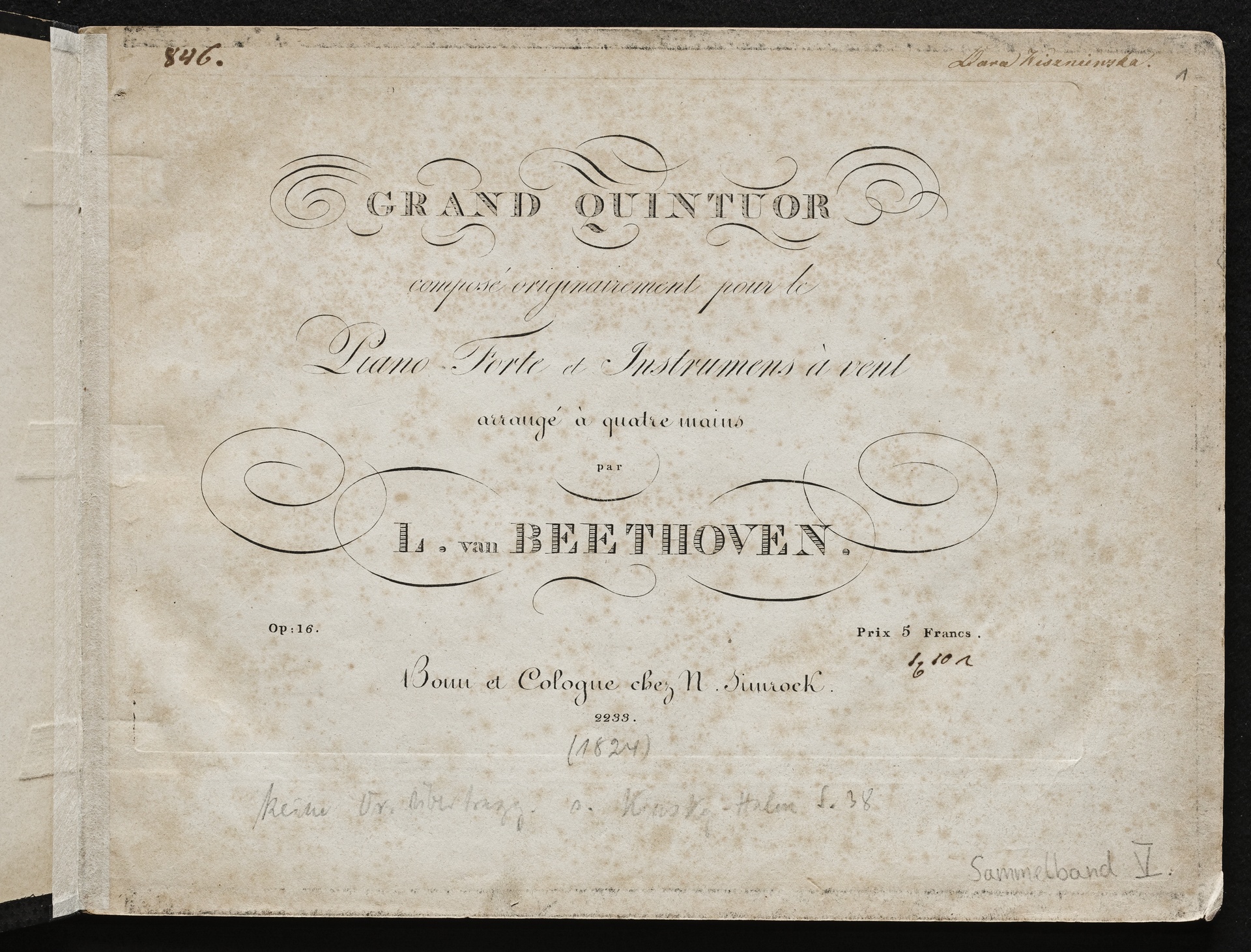 Ludwig van Beethoven, Quintett für Klavier, Oboe, Klarinette, Fagott und Horn (Es-Dur) op. 16, Bearbeitung für Klavier zu 4 Händen, Simrock, 2233